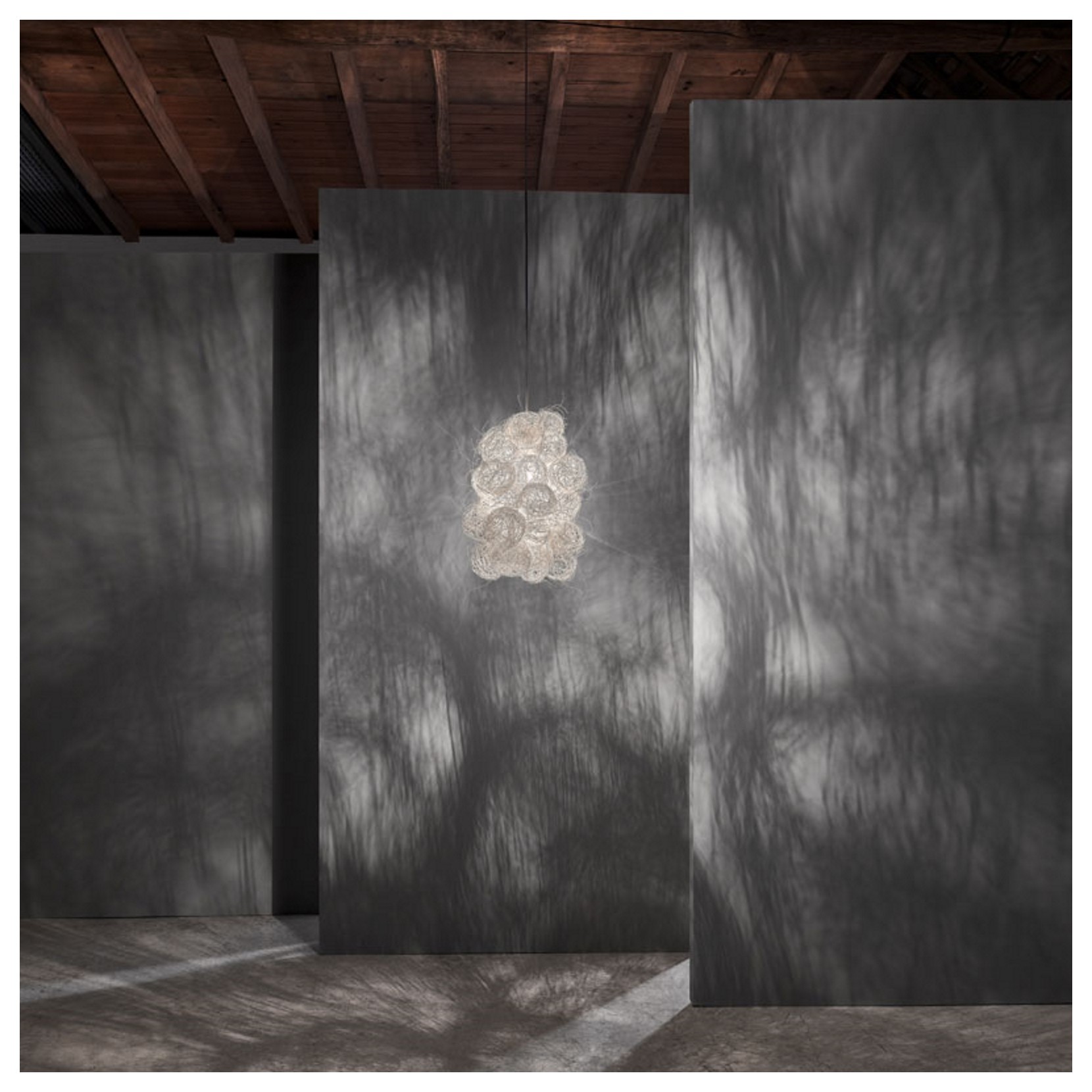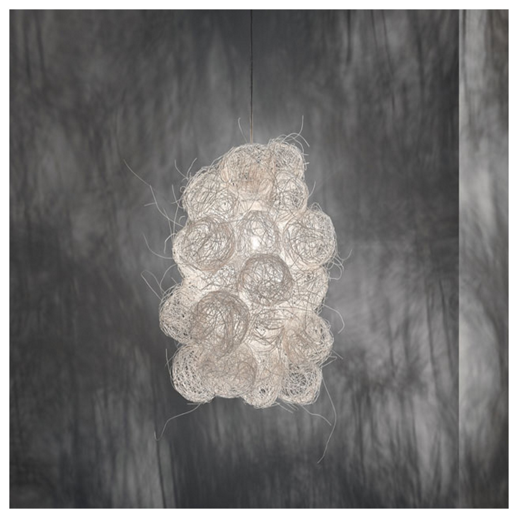 Petites billes en fil dacier qui se fondent pour créer un nuage lumineux délicat. Blum est une lampe réalisée à la main et dessinée par Arturo Álvare. Cest ainsi quun matrial froid comme lacier prend vie.