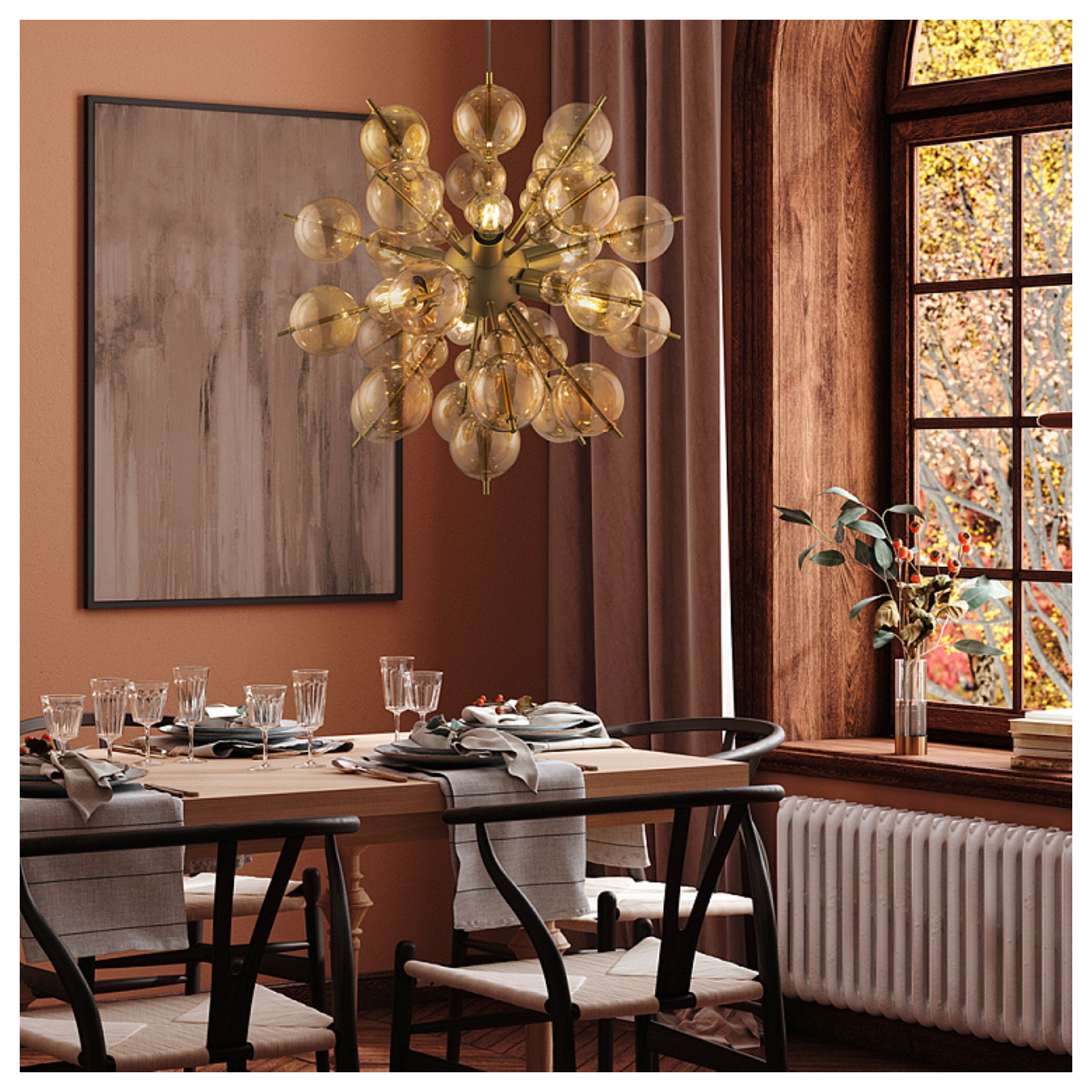 Bolla est la suspension composée des éléments en verre soufflé à revêtement galvanique. Bubble se présente avec une structure de couleur laiton et le verre soufflé de couleur ambre. La lampe luxueuse sadapte à la fois aux environnements modernes et classiques.