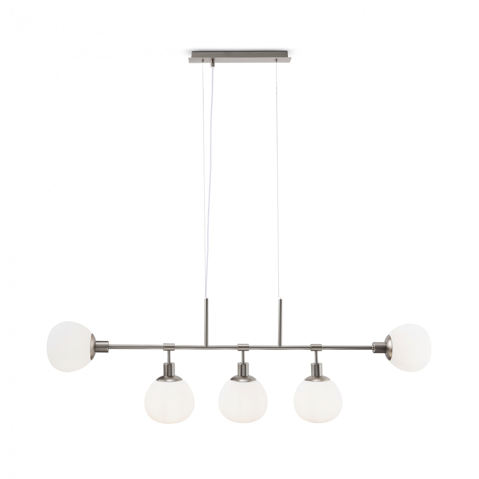La suspension ERICH avec structure en métal or ou nickel avec diffuseurs en verre gravé et la lampe qui parvient à enrichir les pièces de manière moderne. La tige est réglable construite par 3 parties.