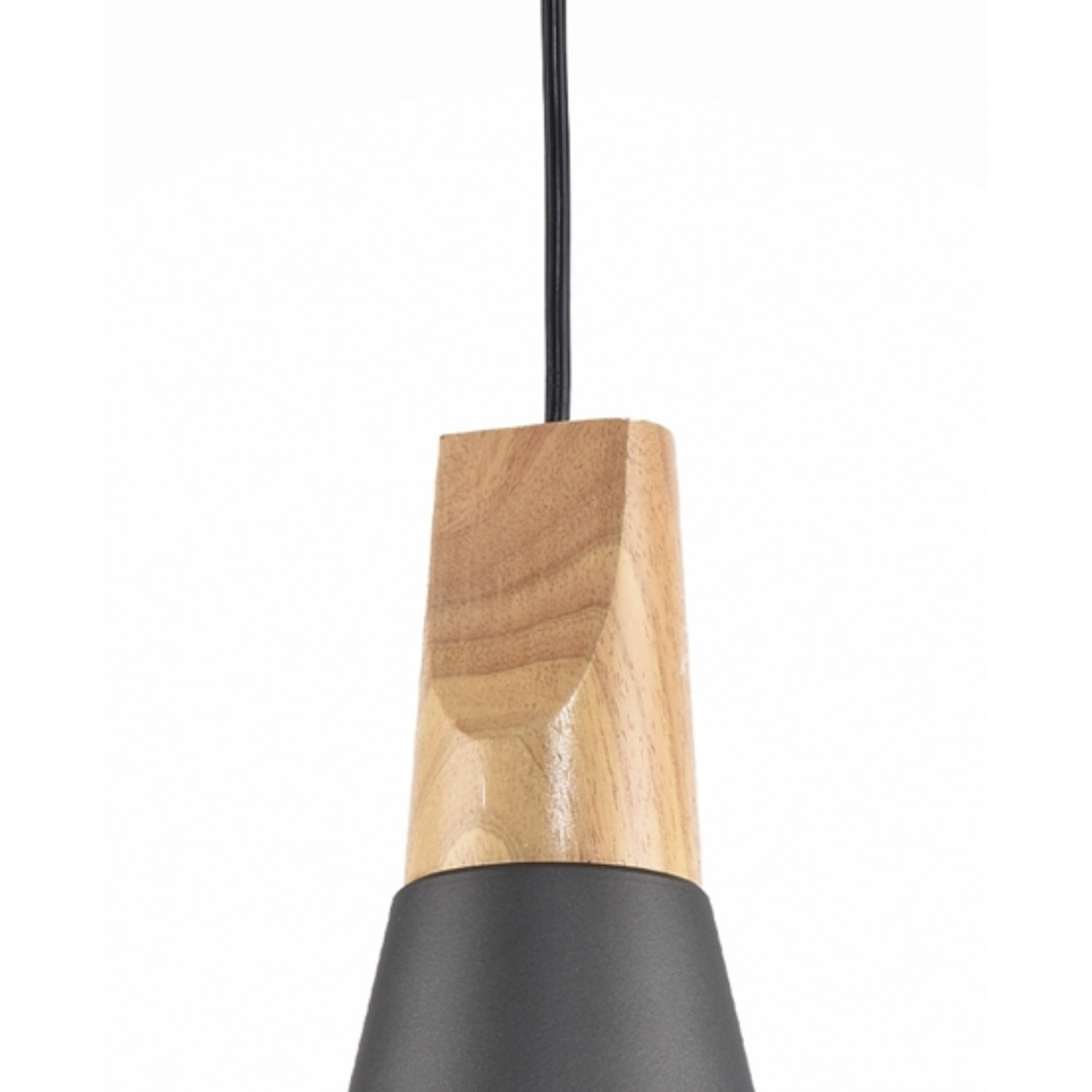 La suspension BICONES voit la combinaison de deux matériaux bois dans la partie supérieure comme un élément décoratif et le diffuseur en métal gris. Bicones sadapte aussi bien à des fins dhabitation quà des fins commerciales.