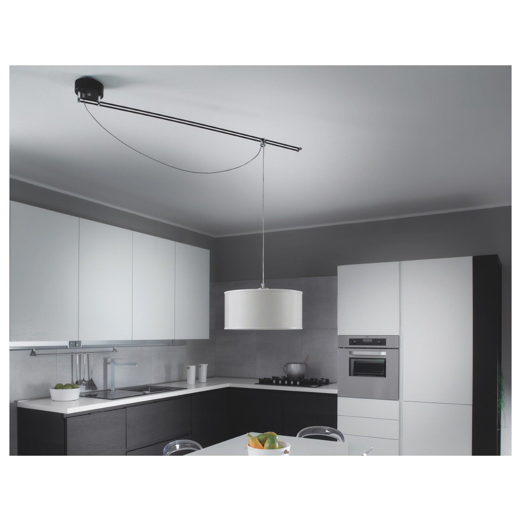 Le plafonnier MOOVE est composé dune structure avec une tige en fibre de carbone accrochée à une rosace circulaire peinte en noir. La structure est rotative de 180 à lhorizontale permettant le positionnement de la source lumineuse, en raison de sa flexibilité particulière. La caractéristique unique de Moove réside dans le mouvement innovant de labat-jour, où la hauteur et la rotation peuvent être ajustées.