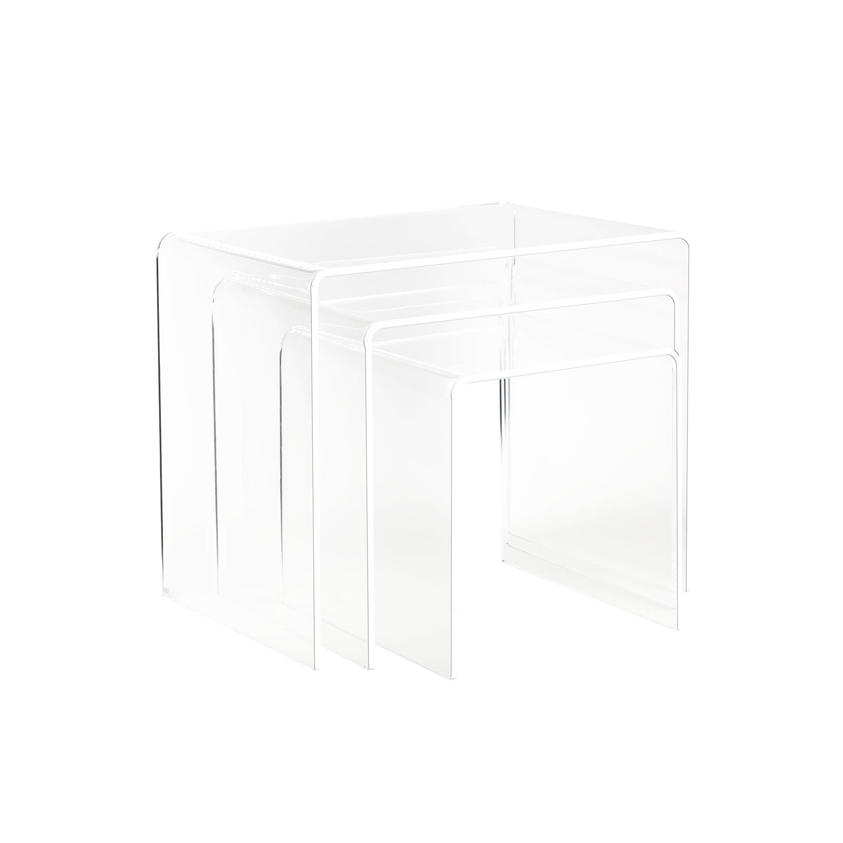 Simply est un ensemble de 3 tables basses transparentes avec un design moderne et qui convient à tous les styles de décoration. Elles se présentent comme des tables dappoint peu encombrantes et polyvalentes. Elles peuvent être utilisées pour exposer les ornements ou comme porte-café.