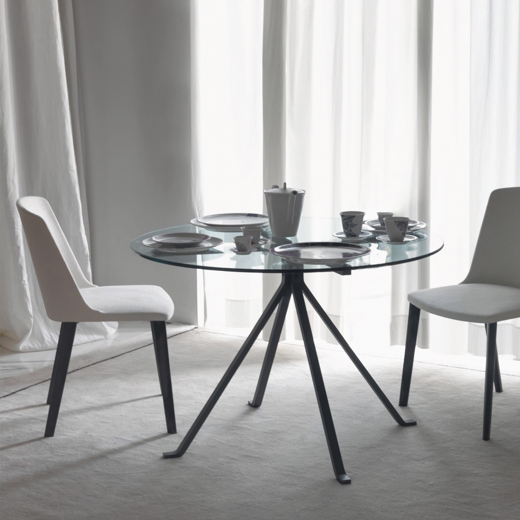 Cousin est une table iconique dessinée en 1974 par Enzo Mari pour Driade; la struttuta est en profilés d’acier peints en noir anthracite et le plateau en forme ronde ou carrée en verre trempé transparent. Cousin et représente un véritable équilibre entre la forme et la matière et est maintenant une référence dans le design contemporain.