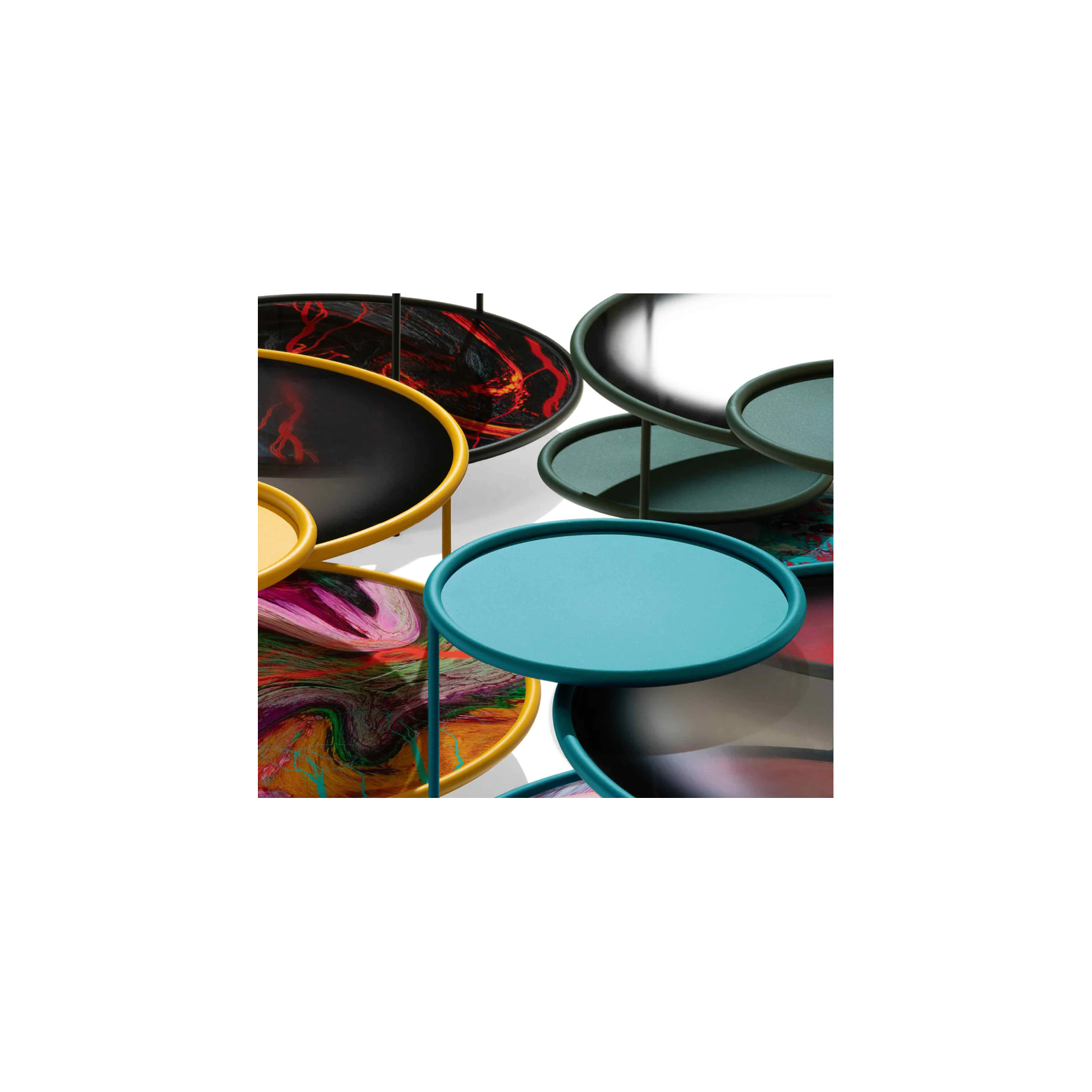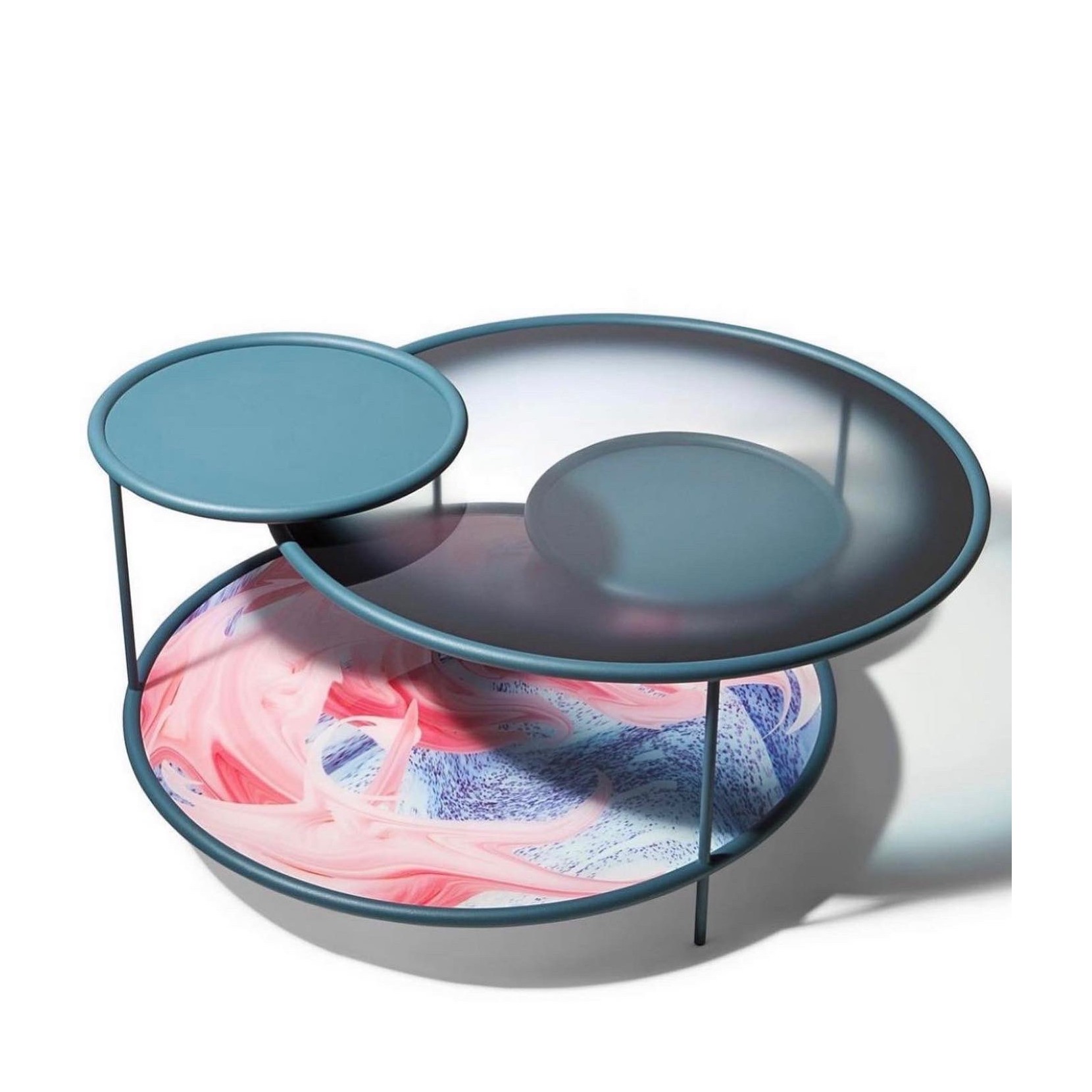 Quatre étages avec structure en acier enduit de poudre de polyester qui se croisent à différents niveaux. Voici Sangoku, une table dessinée par Elena Salmistraro, dont le nom en japonais se réfère à des problèmes mathématiques qui ont comme objet des cercles et des ellipses superposés les uns sur les autres. Les points dintersection entre les différents plans deviennent les pieds de cette table créant ainsi un équilibre entre le plein et le vide.