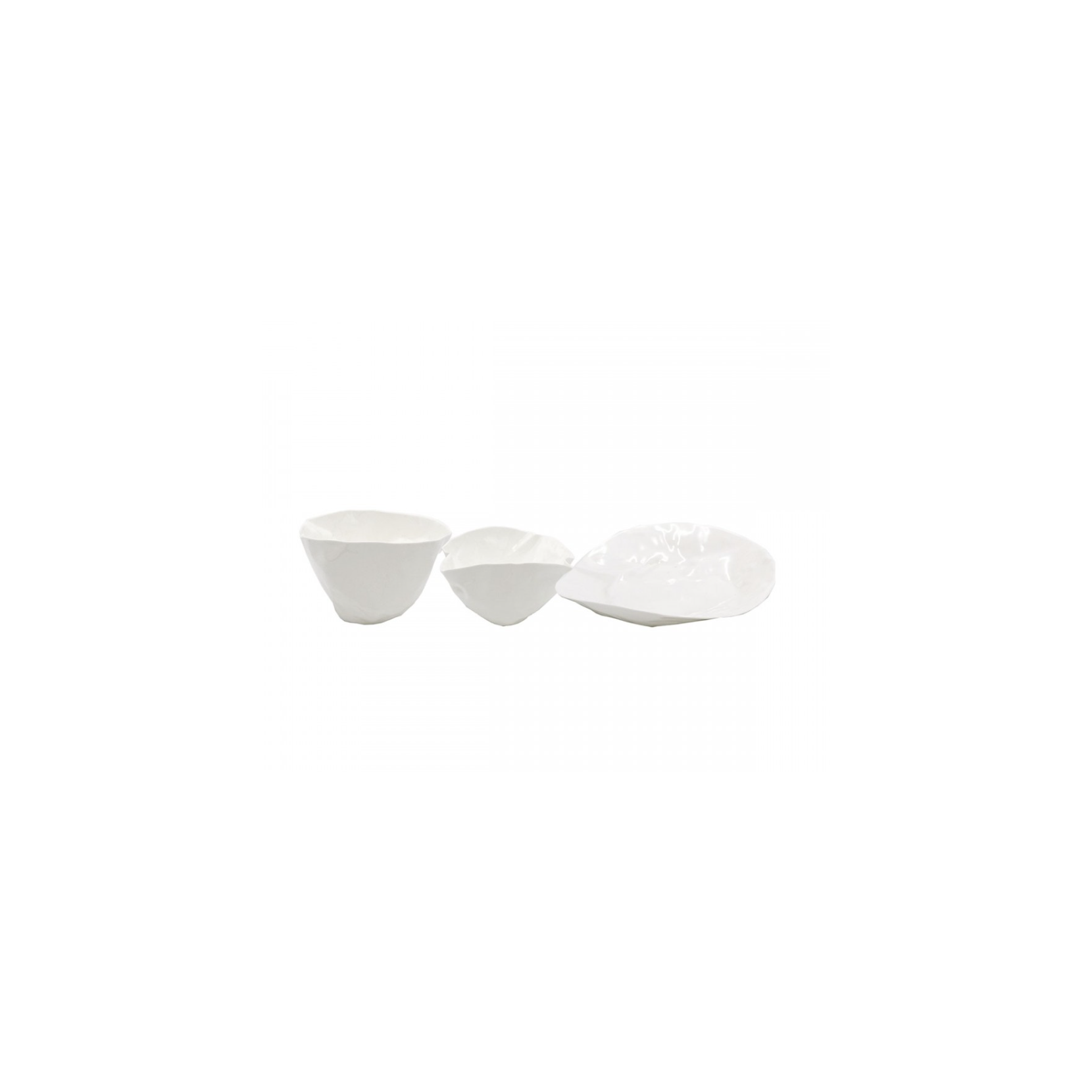 Xie Dong, designer de la série Adelaide, est tombée amoureuse de la porcelaine de Bone China : un matériau délicat et délicat, idéal pour ses créations. La peinture souligne les lignes pures et reproduit parfaitement les caractéristiques du papier. La nappe froissée sinspire des sacs enveloppants qui transmettent un air de légèreté et de sérénité.