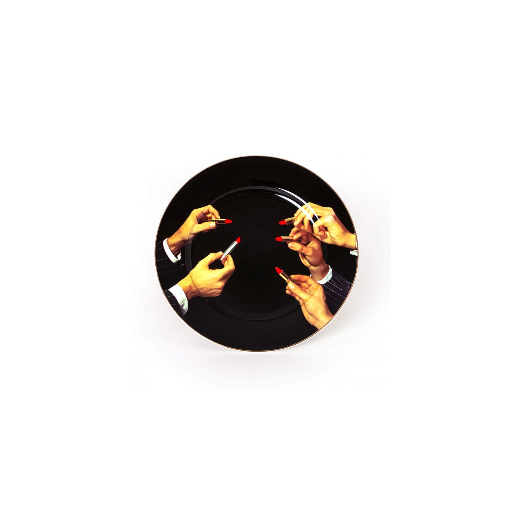 SELETTI PORCELAIN PLATES Assiette en Porcelaine Rouge à Lèvres Noir Bord Doré