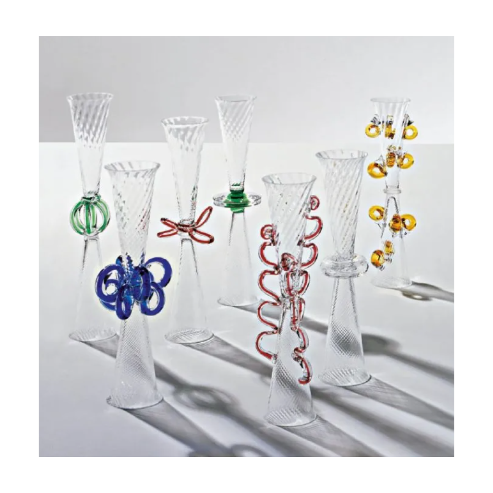 Borek Sipek peut se définir comme un magicien du verre, ses objets et ses idées sont dune originalité suggestive, en sappuyant sur un style innovant qui a su créer une harmonie entre Orient et Occident. Dans ses projets, il a su combiner les formes de vases, de leviers, de centritavola et de verres de collection réalisés en différents métaux : verre soufflé, porcelaine et métal le tout réalisé à la main.