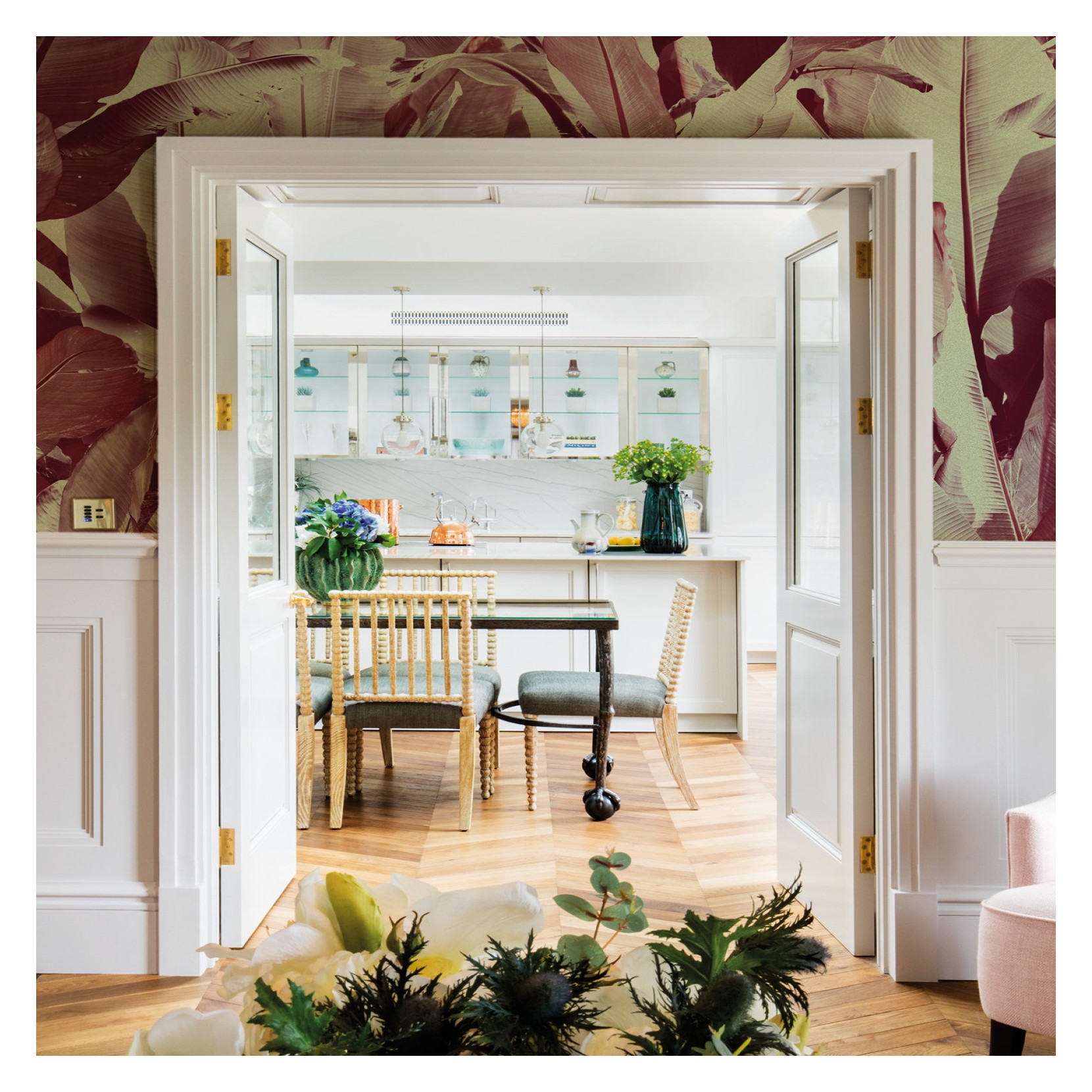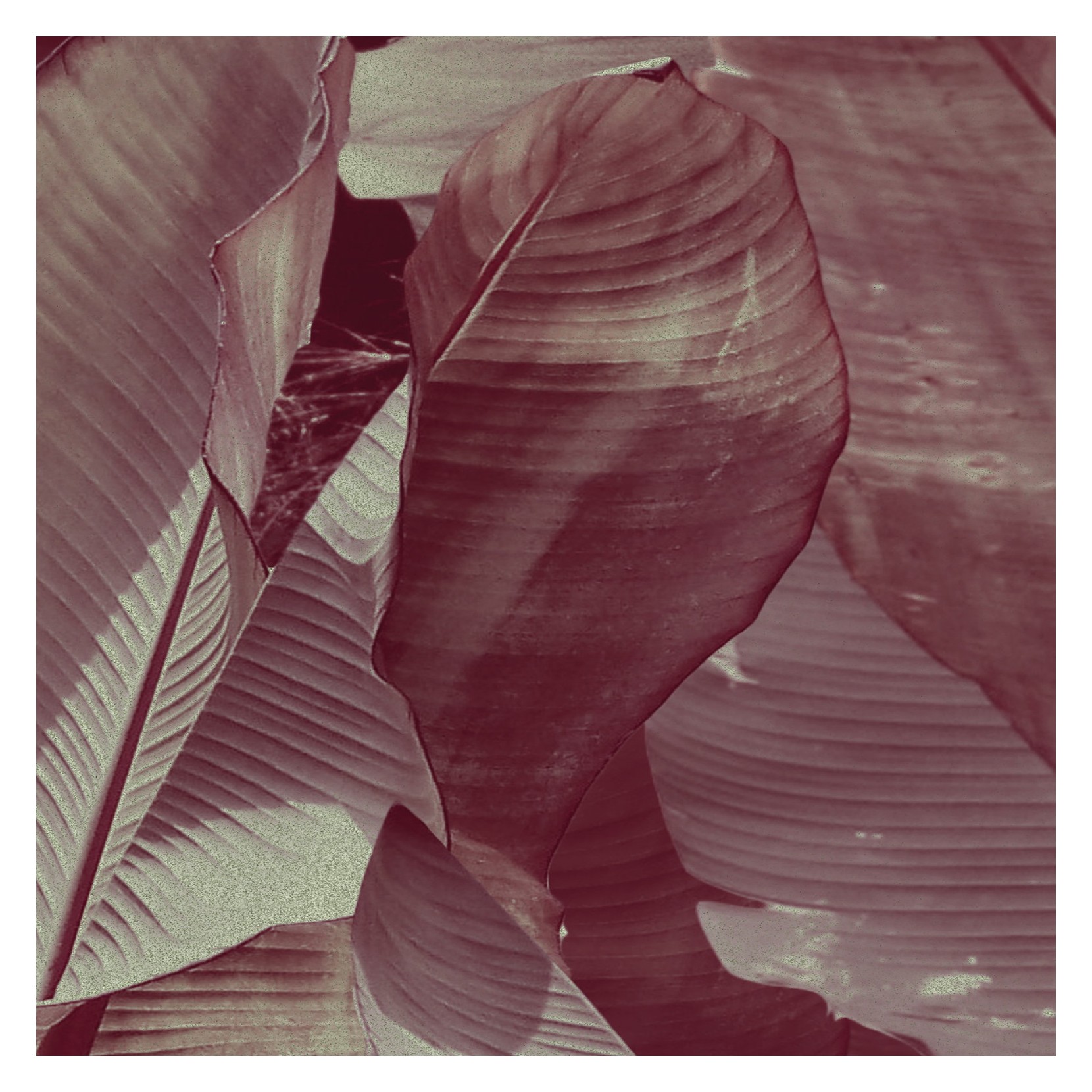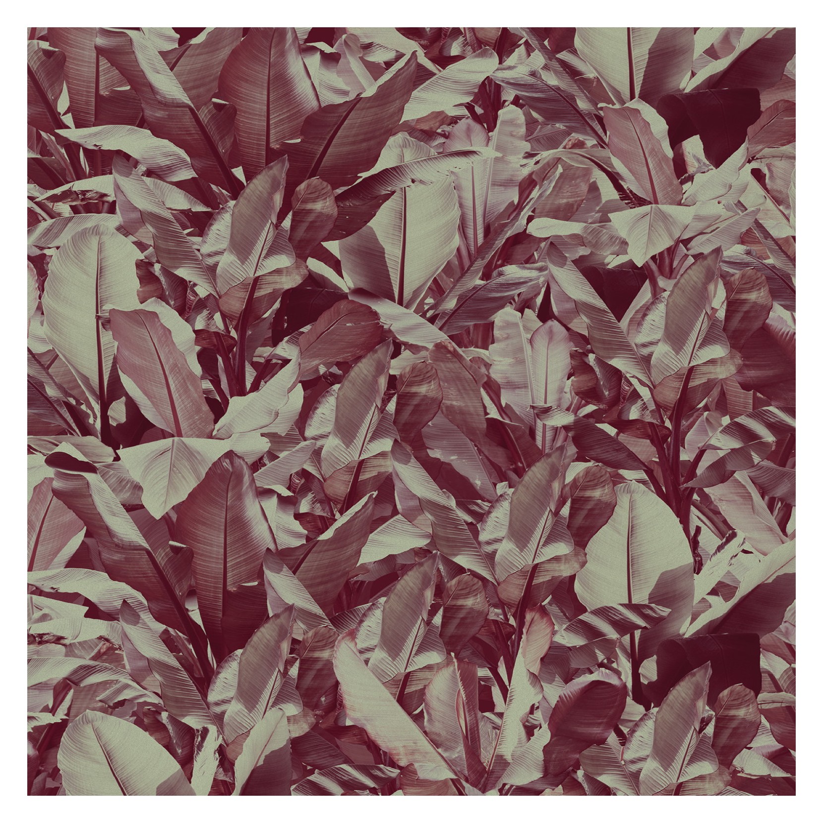 Papier peint très spécial avec forêt exotique tracée par les géométries organiques des feuilles de bananier.