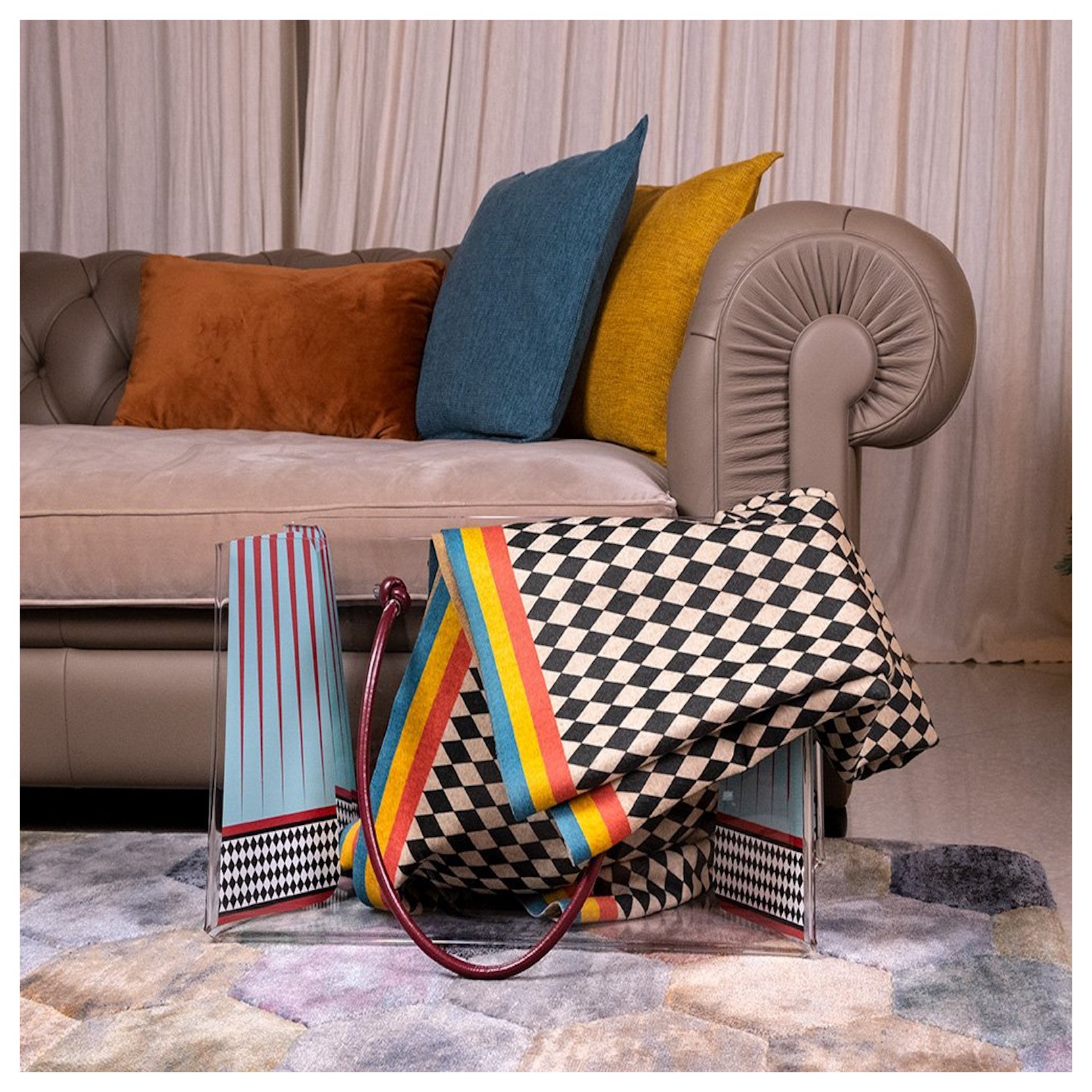 VESTA riesca a rendere ogni parte della casa unica e questa volta lo fa con il portaoggetti CHARLOTTE, il suo design originale e iconico lo rende un elemento darredo pratico che funge da contenitore multiuso. La struttura è realizzata in acrilico resistente è arricchita da manici in pelle che gli danno un tocco di eleganza.