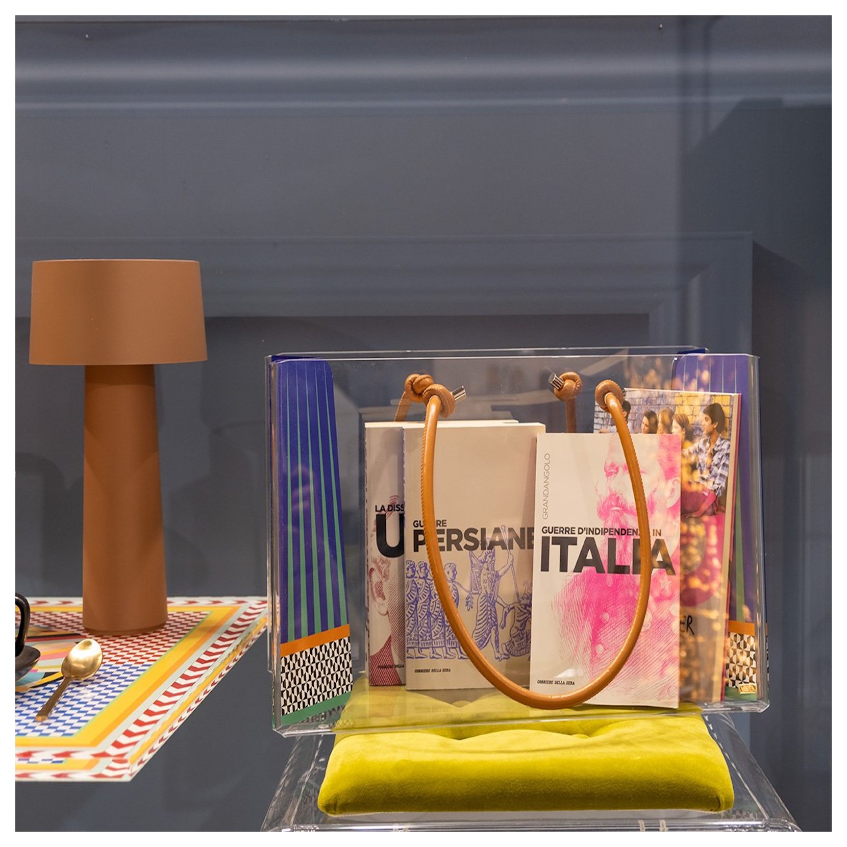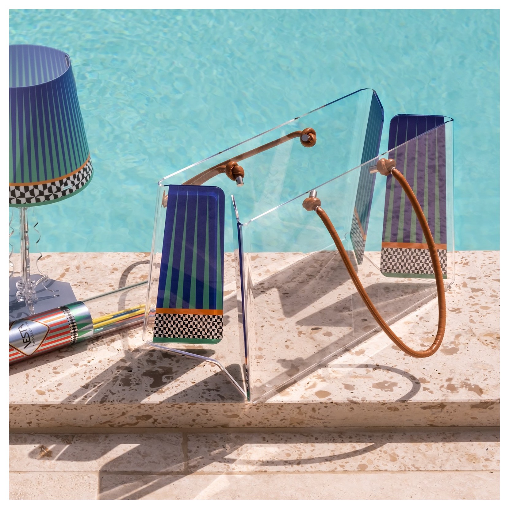 VESTA riesca a rendere ogni parte della casa unica e questa volta lo fa con il portaoggetti CHARLOTTE, il suo design originale e iconico lo rende un elemento darredo pratico che funge da contenitore multiuso. La struttura è realizzata in acrilico resistente è arricchita da manici in pelle che gli danno un tocco di eleganza.