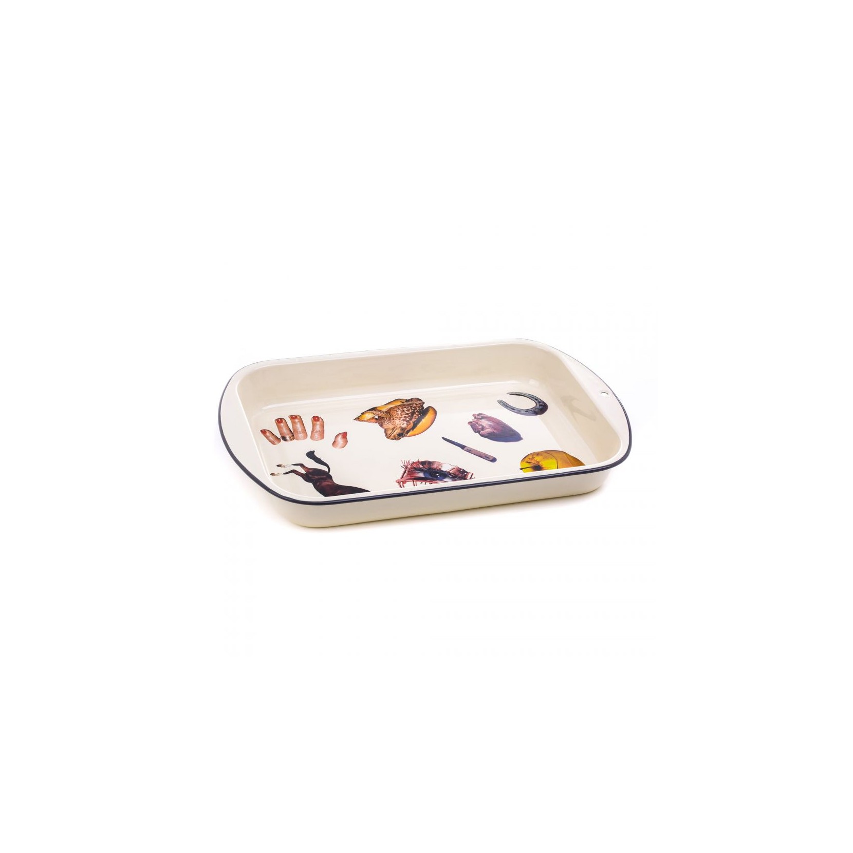 SELETTI propone la serie ENAMEL COLLECTION, una teglia in metallo smaltato disegnata dal designer Toiletpaper Home. Rendendo la tavola unica mantenendo un inconfondibile spirito.