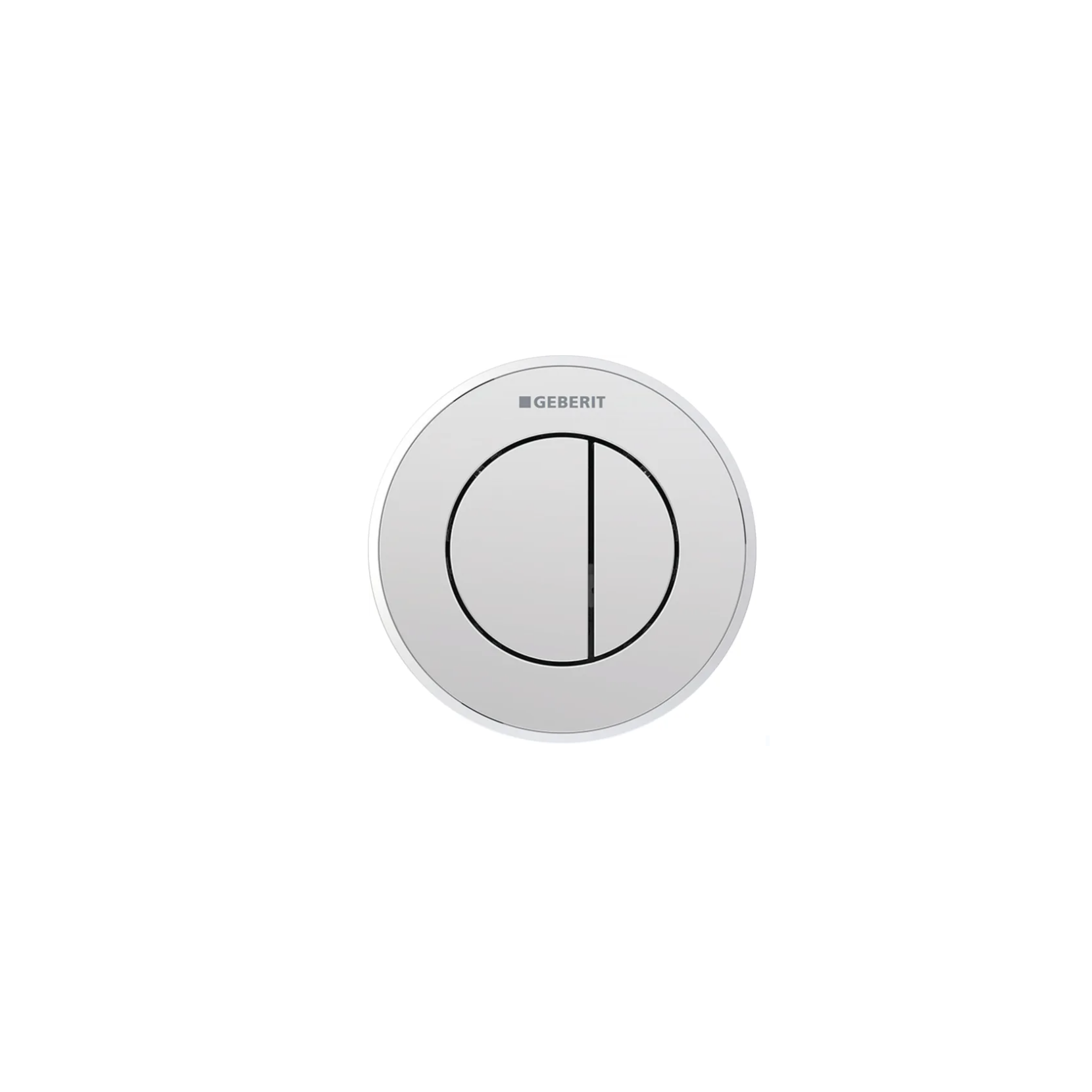 La placca Geberit Tipo10 è disponibile in sette varianti colore con doppio risciacquo con risparmio idrico. La corona di finitura è abbinata al colore del comando. Tipo10 permette un posizionamento a piacere entro 1,70 metri dalla cassetta. Inoltre è l'ideale per pareti in muratura, in cartongesso e per mobili.
