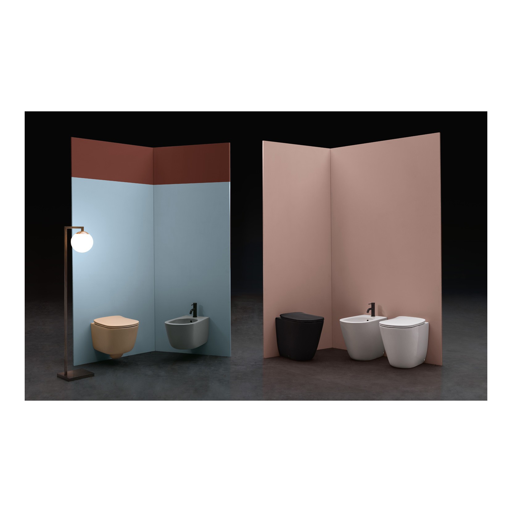 Tre parole per definire la personalità della collezione EVA : Elegante. Vanitosa. Attraente. Design essenziale e contemporaneo in versione sospesa e back to wall. Con EVA, lambiente bagno trova una nuova e preziosa protagonista. L'altezza si arricchisce di 2cm, la profondità invece è di 55cm. Lo scarico traslato è di serie, nessun tubo a vista e installazione facilitata: la soluzione ideale in caso di ristrutturazione di bagni esistenti.