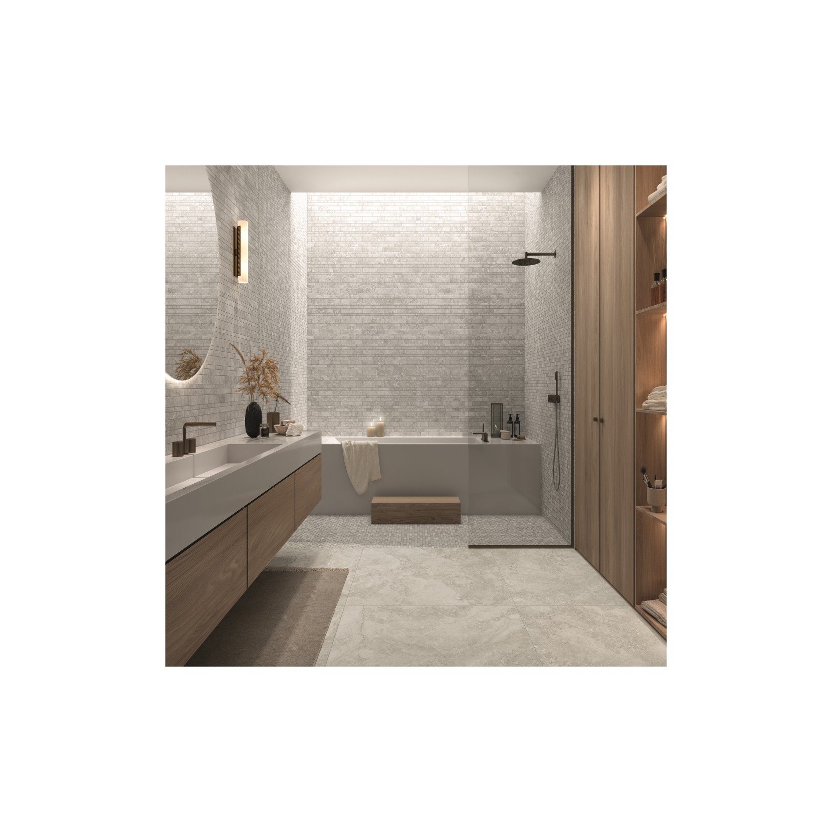 La collezione rivisita il travertino in chiave moderna grazie a tecnologie innovative capaci di dare risalto alle qualità cromatiche e materiche della ceramica.