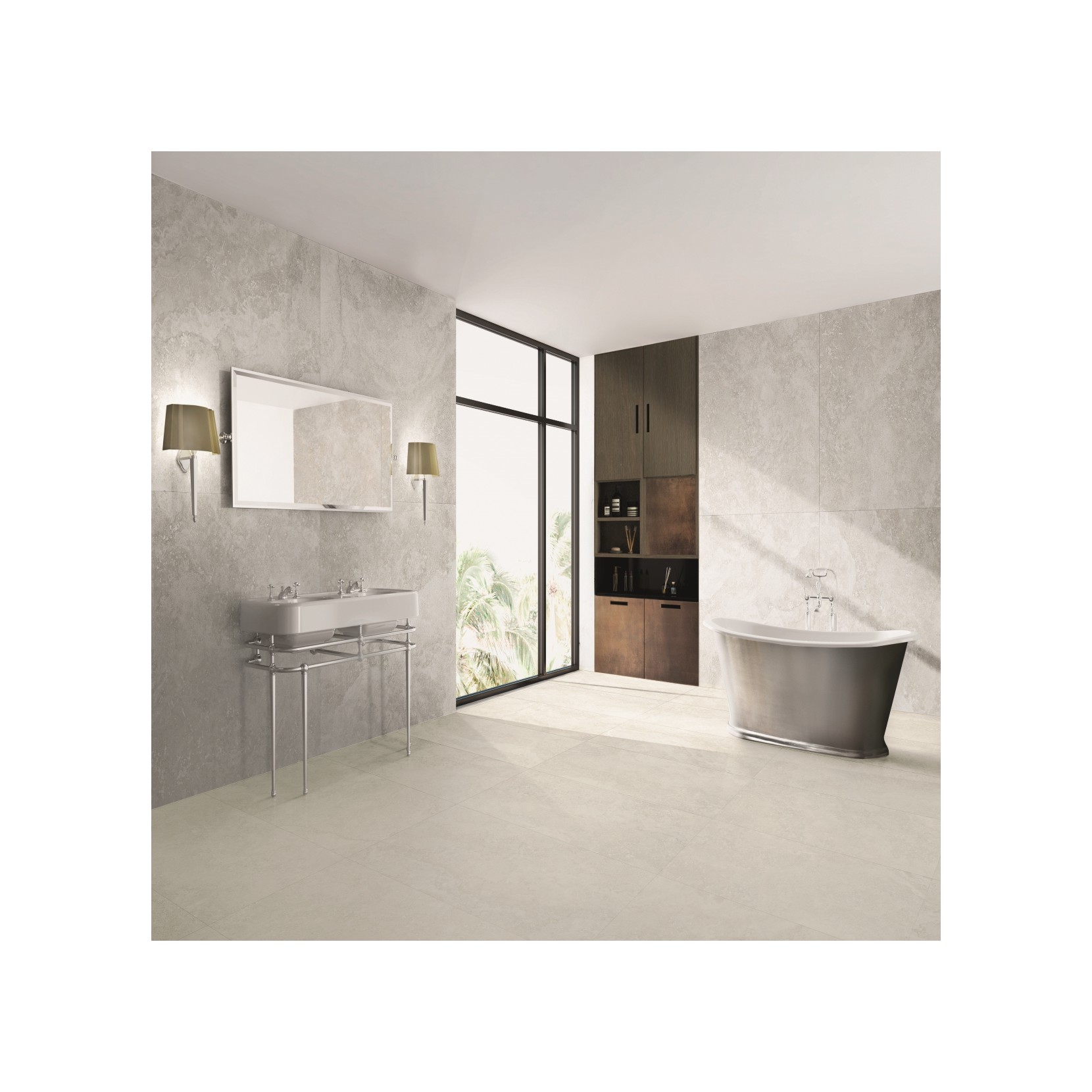 La collezione rivisita il travertino in chiave moderna grazie a tecnologie innovative capaci di dare risalto alle qualità cromatiche e materiche della ceramica.