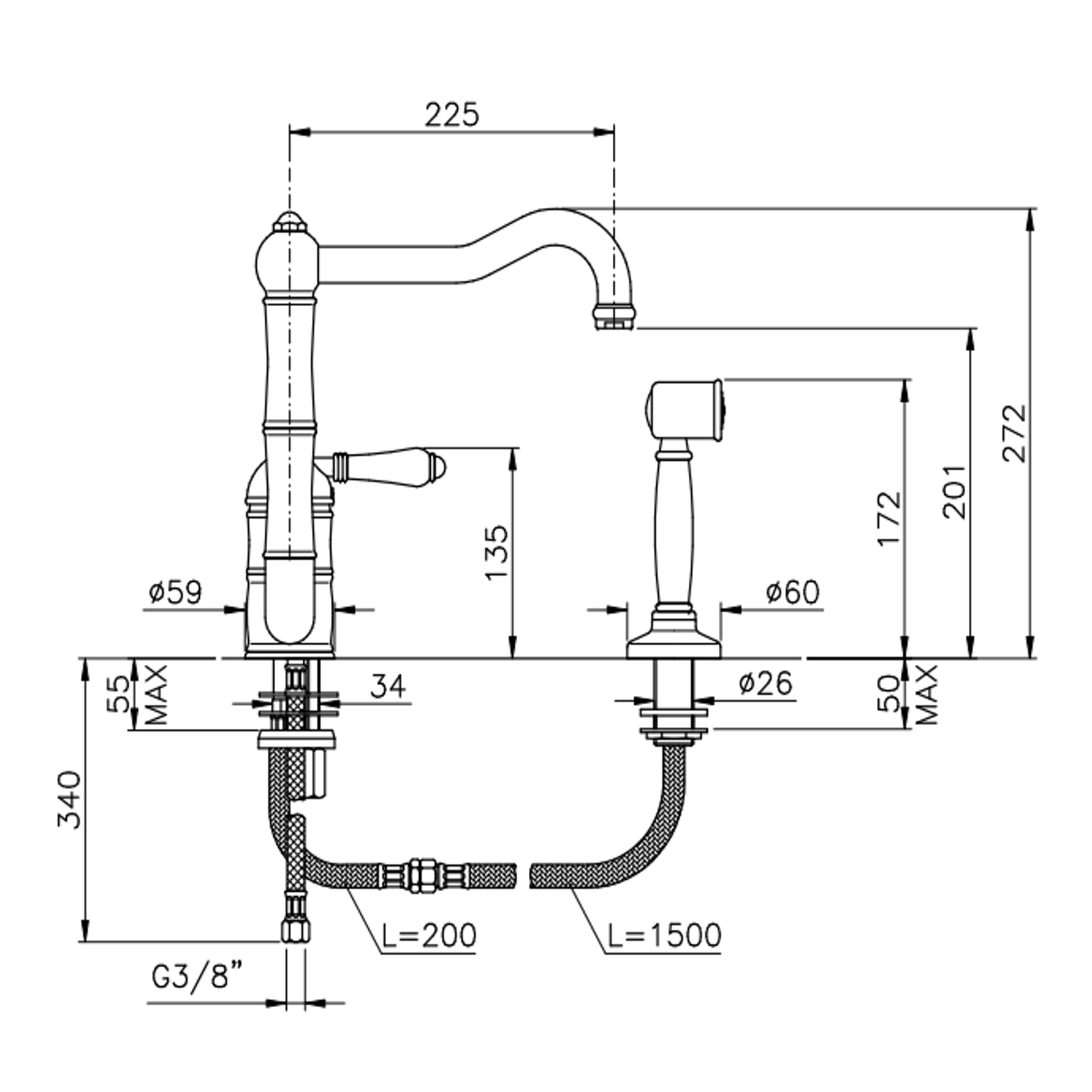 Officina Nicolazzi El Capitan, Monocomando lavello canna girevole c/doccia estraibile