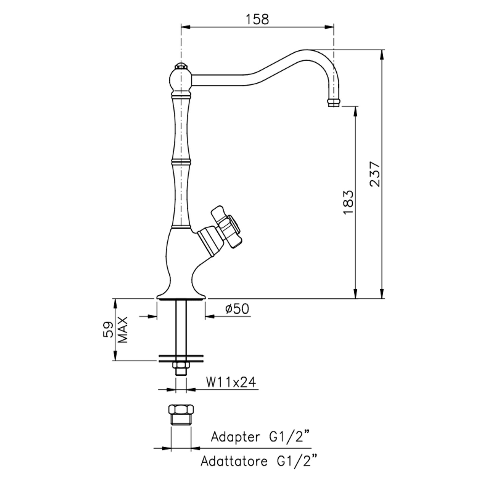 Officina Nicolazzi Dames Anglaises, Rubinetto singolo per filtro canna a colonna