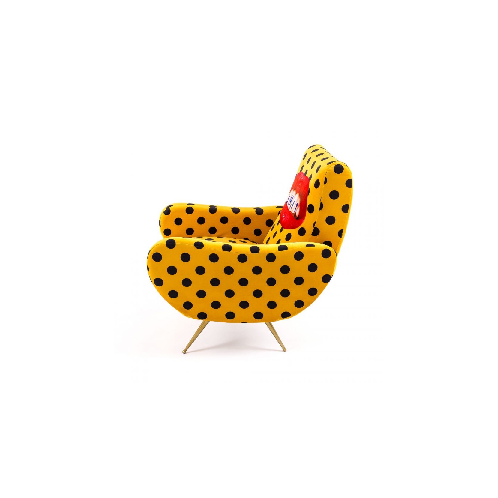 SELETTI con la serie di poltrone disegnate dall'designer Toiletpaper rende omaggio alla tradizionale poltrona in stile anni '50 con immagini stravaganti.