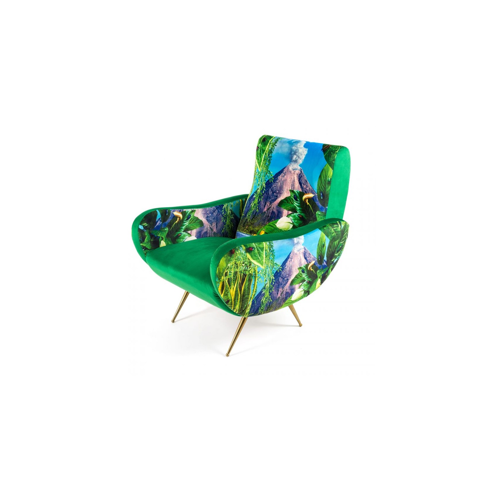 SELETTI con la serie di poltrone disegnate dall'designer Toiletpaper rende omaggio alla tradizionale poltrona in stile anni '50 con immagini stravaganti.