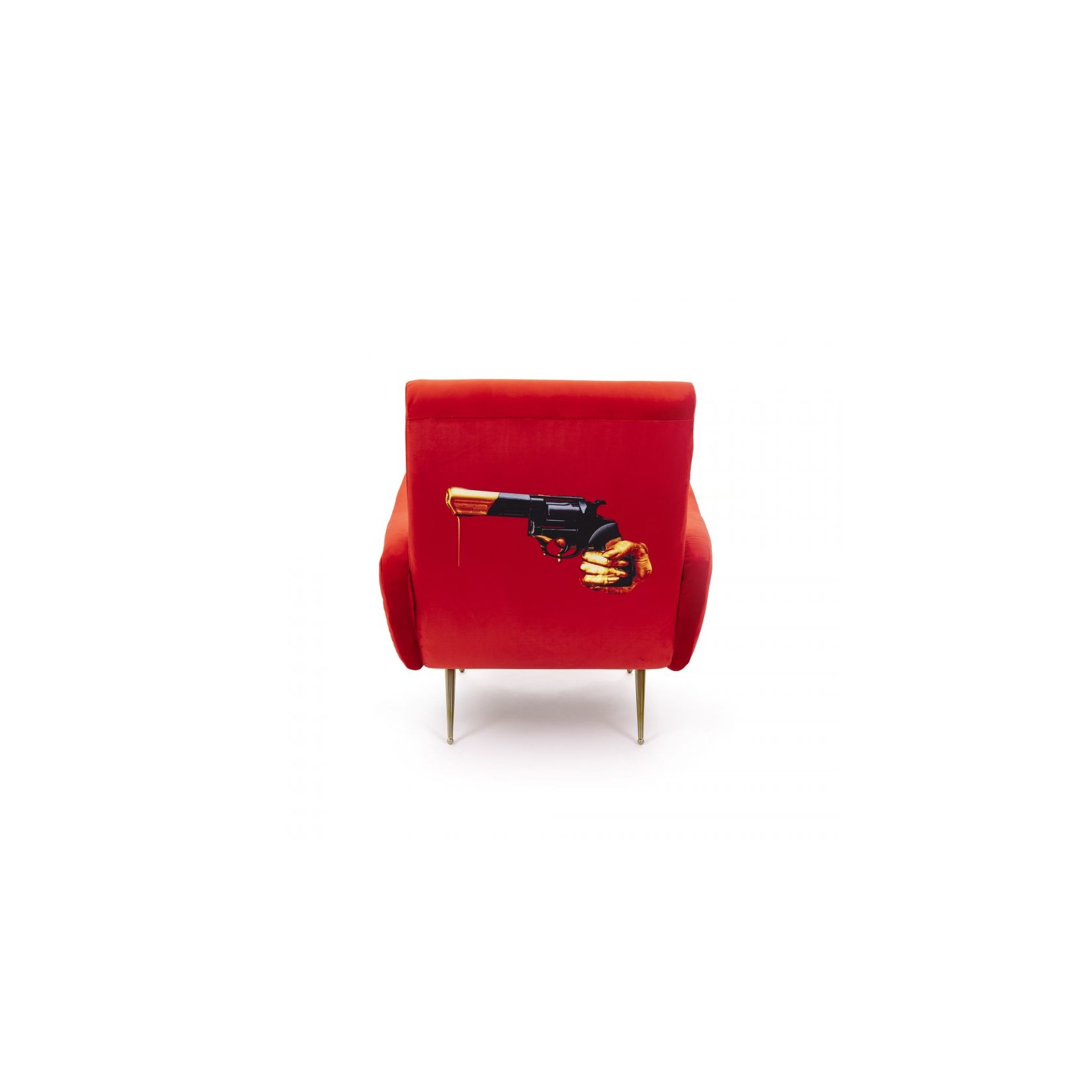 SELETTI con la serie di poltrone disegnate dall'designer Toiletpaper rende omaggio alla tradizionale poltrona in stile anni '50 con immagini stravaganti.