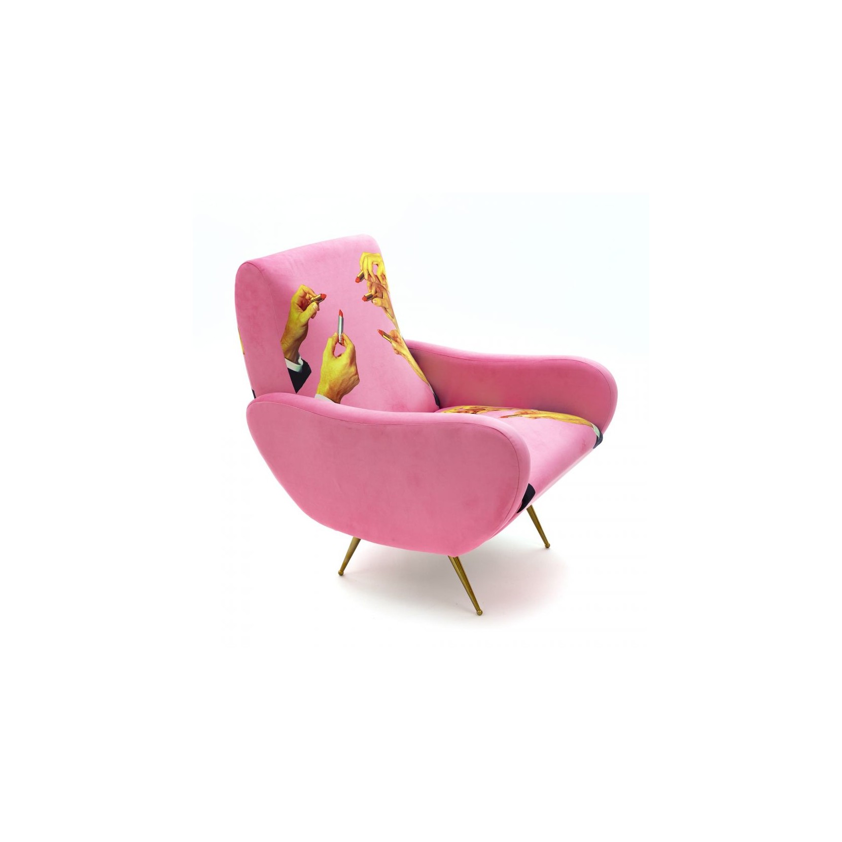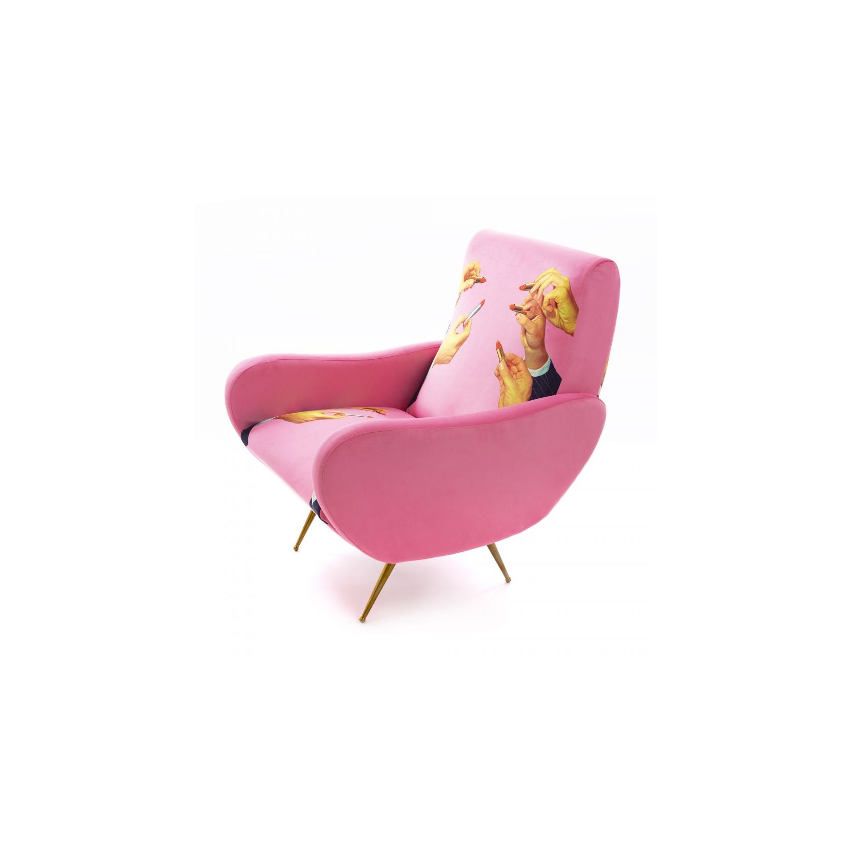 SELETTI con la serie di poltrone disegnate dall'designer Toiletpaper rende omaggio alla tradizionale poltrona in stile anni '50 con immagini stravaganti.