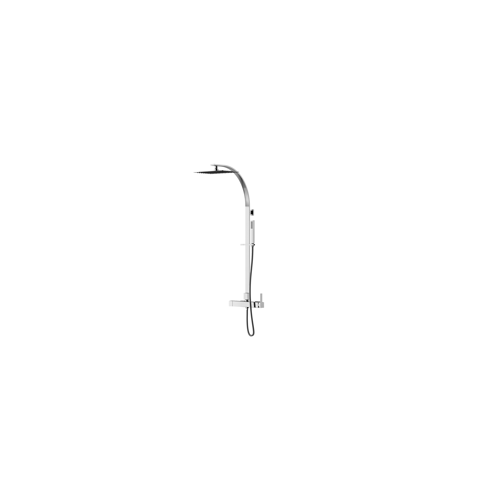 Miscelatore esterno doccia con deviatore, completo di colonna doccia con soffione 300 x 200 mm interamente in acciaio inox anticalcare e doccetta monogetto