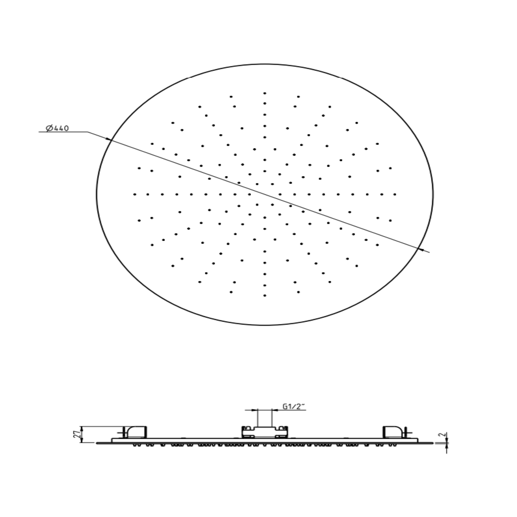 F.lli Frattini Docce Inox, Soffione da incasso Ø44 cm