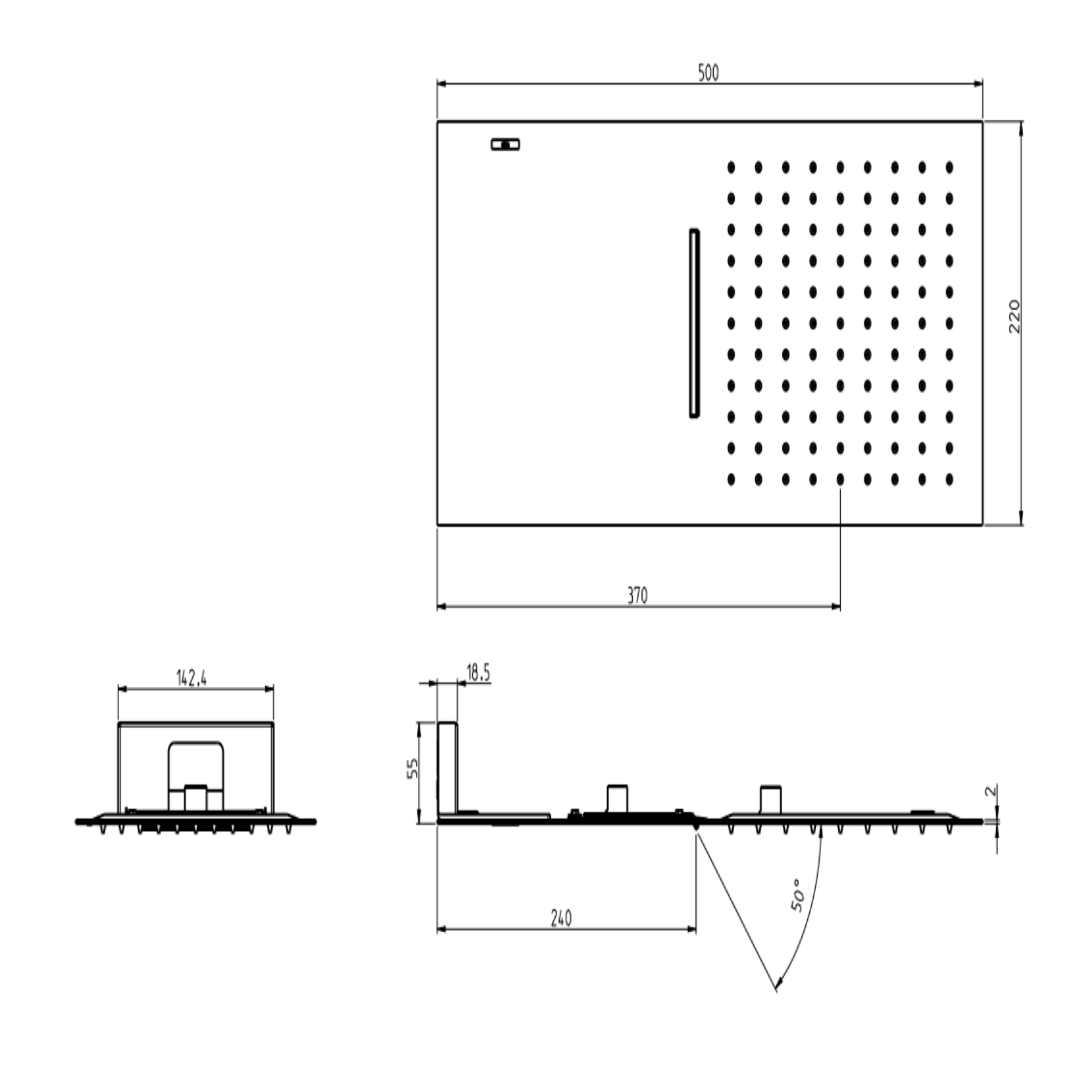 F.lli Frattini propone la serie Contemporary Docce Inox. Soffione pioggia e cascata anticalcareo in acciaio inox 50x22 cm con safety valve