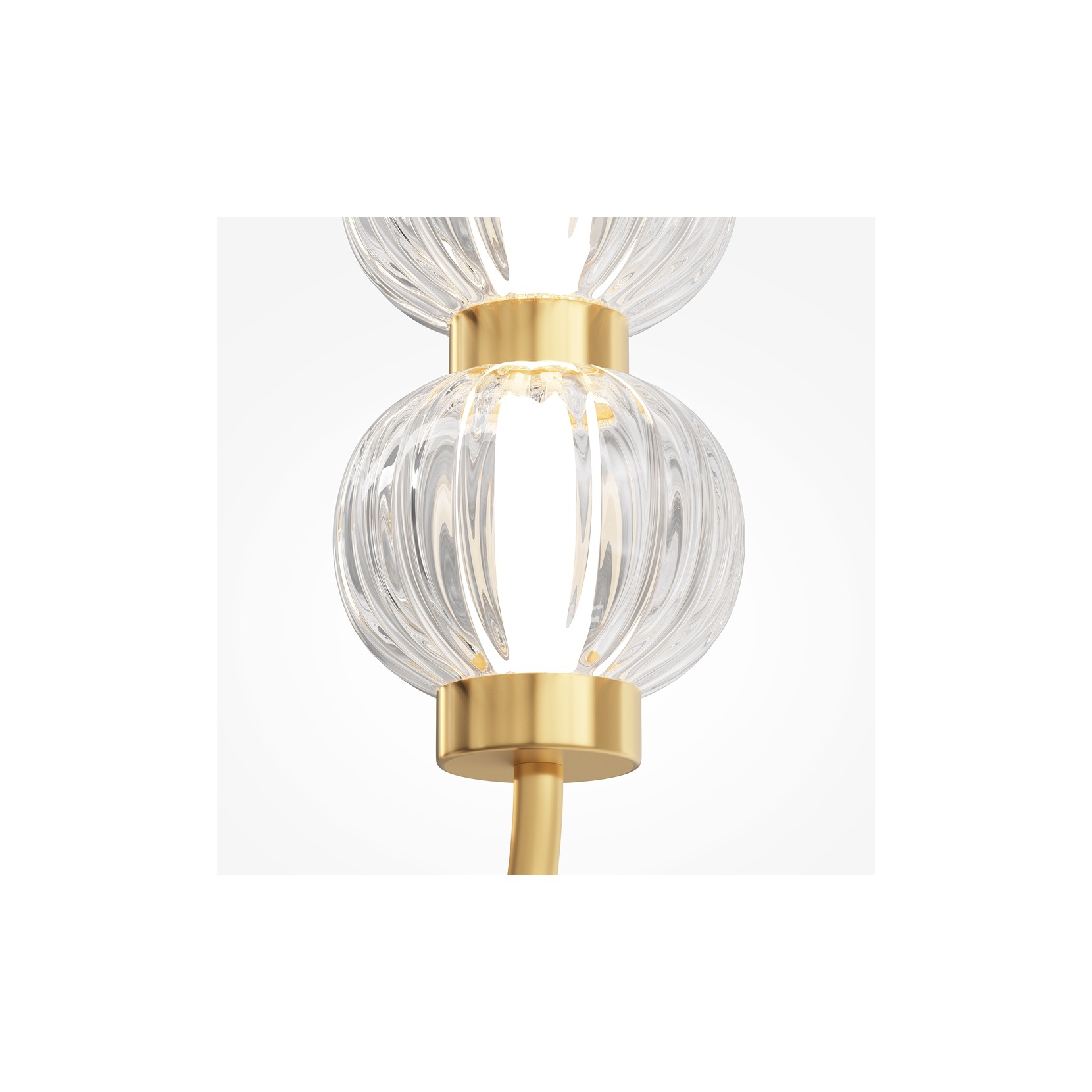 Un'elegante armatura in metallo color oro, impreziosita da dettagli decorativi a forma di sfere in vetro colato in rilievo.