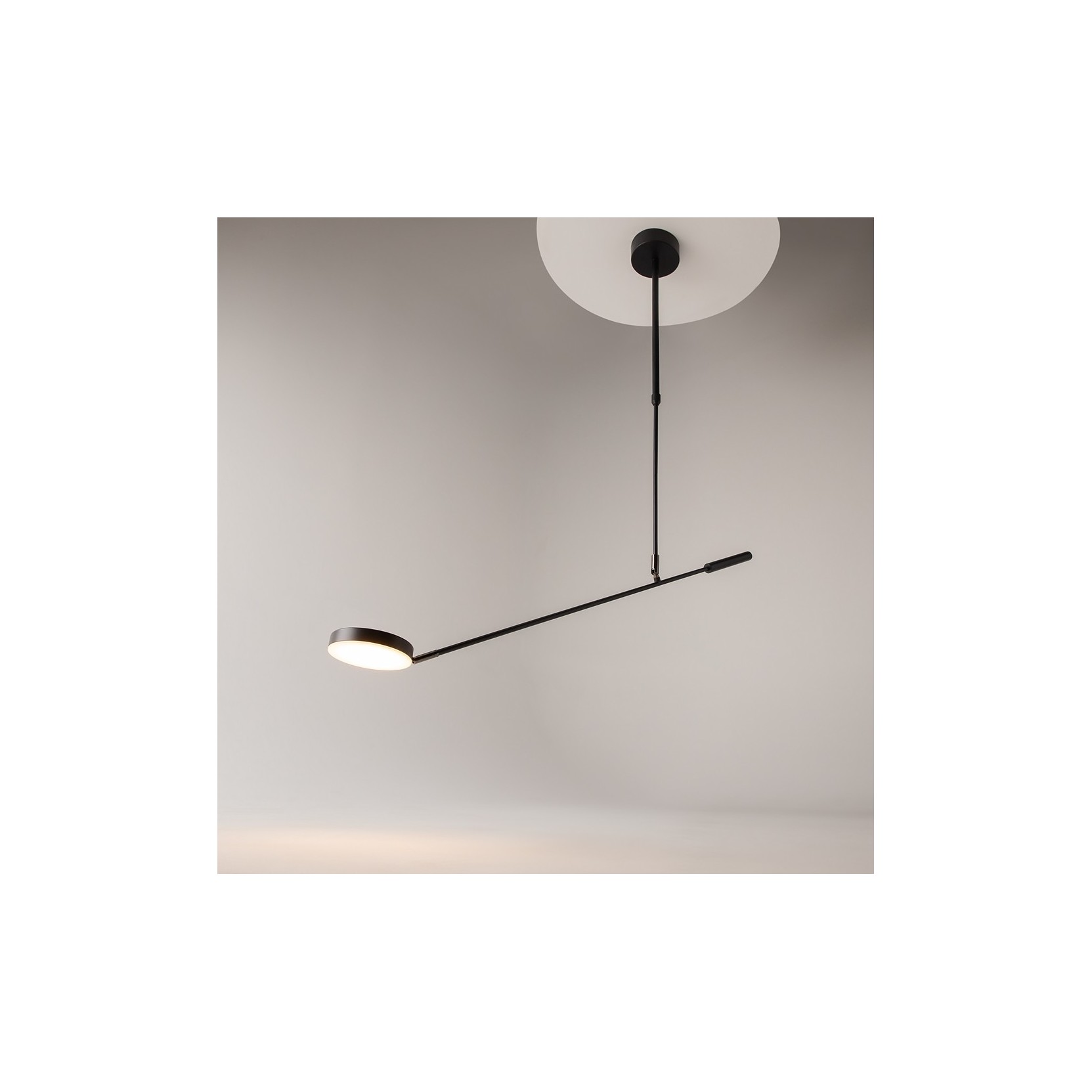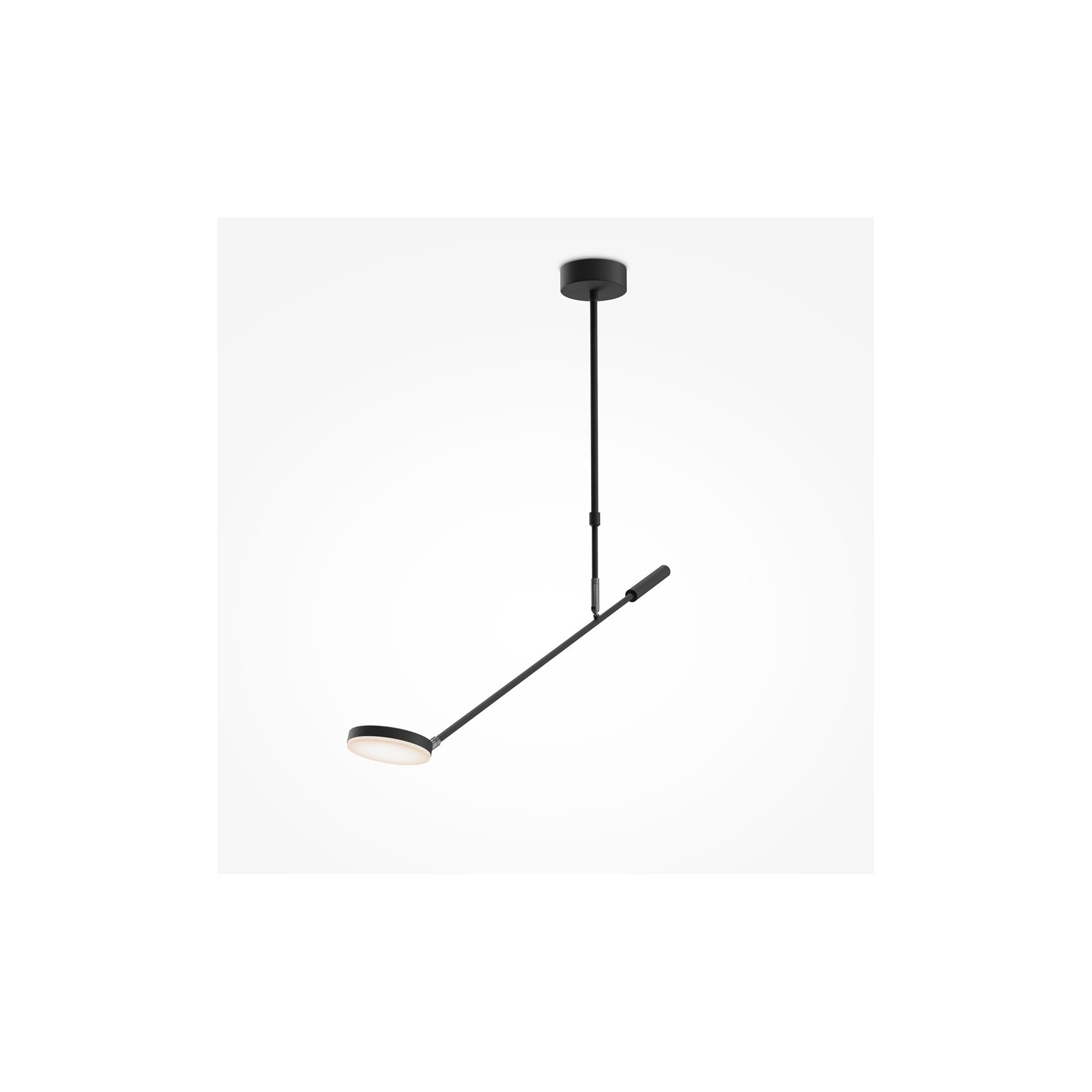 La plafoniera Fad ridefinisce l'illuminazione da soffitto attraverso una struttura geometrica a raggiera. Caratterizzata da una solida asta centrale nera da cui si diramano bracci orizzontali di diverse lunghezze, questa lampada è progettata per distribuire la luce in modo uniforme su ampie superfici, eliminando le zone d'ombra e creando un'estetica visiva di grande leggerezza.