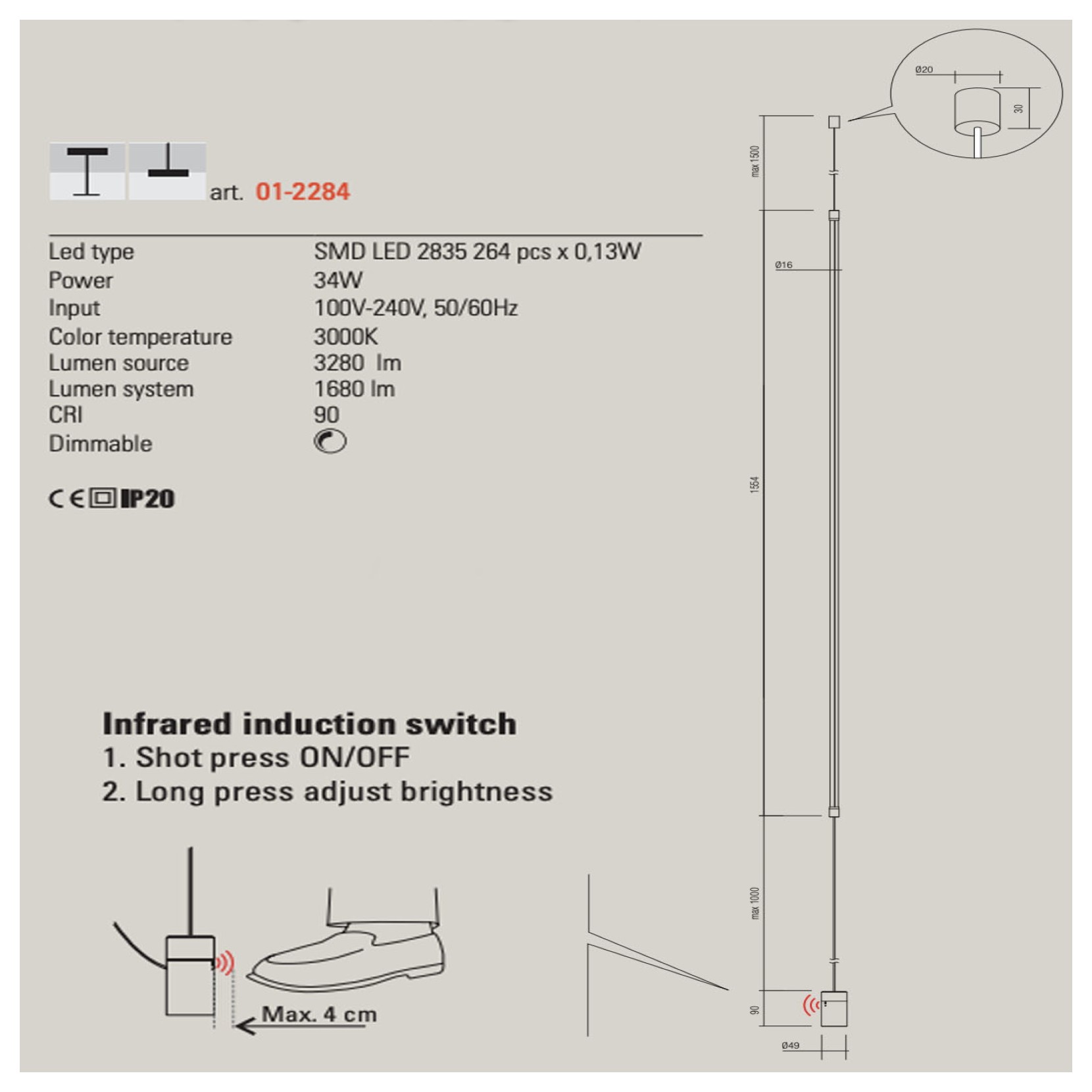 La lampada Acrobat racchiude l'essenza del concetto dello stile minimale con uno sguardo sempre all'eleganza.La struttura in alluminio e metallo verniciato in nero opaco con diffusore in acrilico opalino. La lampada è dotata di interruttore di prossimità e dimmer a infrarossi, con raggio di rilevamento massimo di 4 cm.