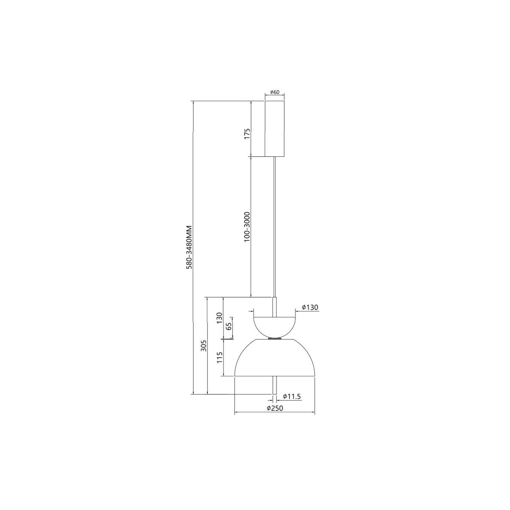 L'armatura è in metallo di colore nero, con un design minimalista di lampade in vetro disponibili in tre colori: fumoso, trasparente e grigio.
