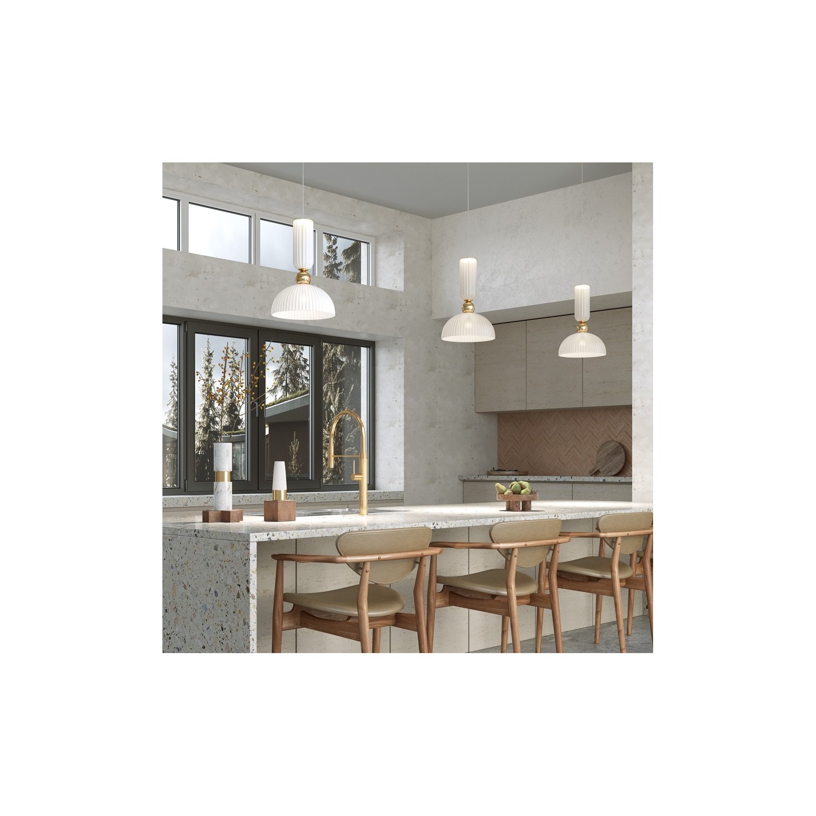 La lampada sospensione Antic incarna un’eleganza senza tempo che fonde richiami rétro e minimalismo moderno. Caratterizzata da un gioco di volumi sovrapposti, questa lampada utilizza il vetro soffiato scanalato per modellare la luce, creando un’atmosfera calda e vibrante in qualsiasi ambiente domestico.