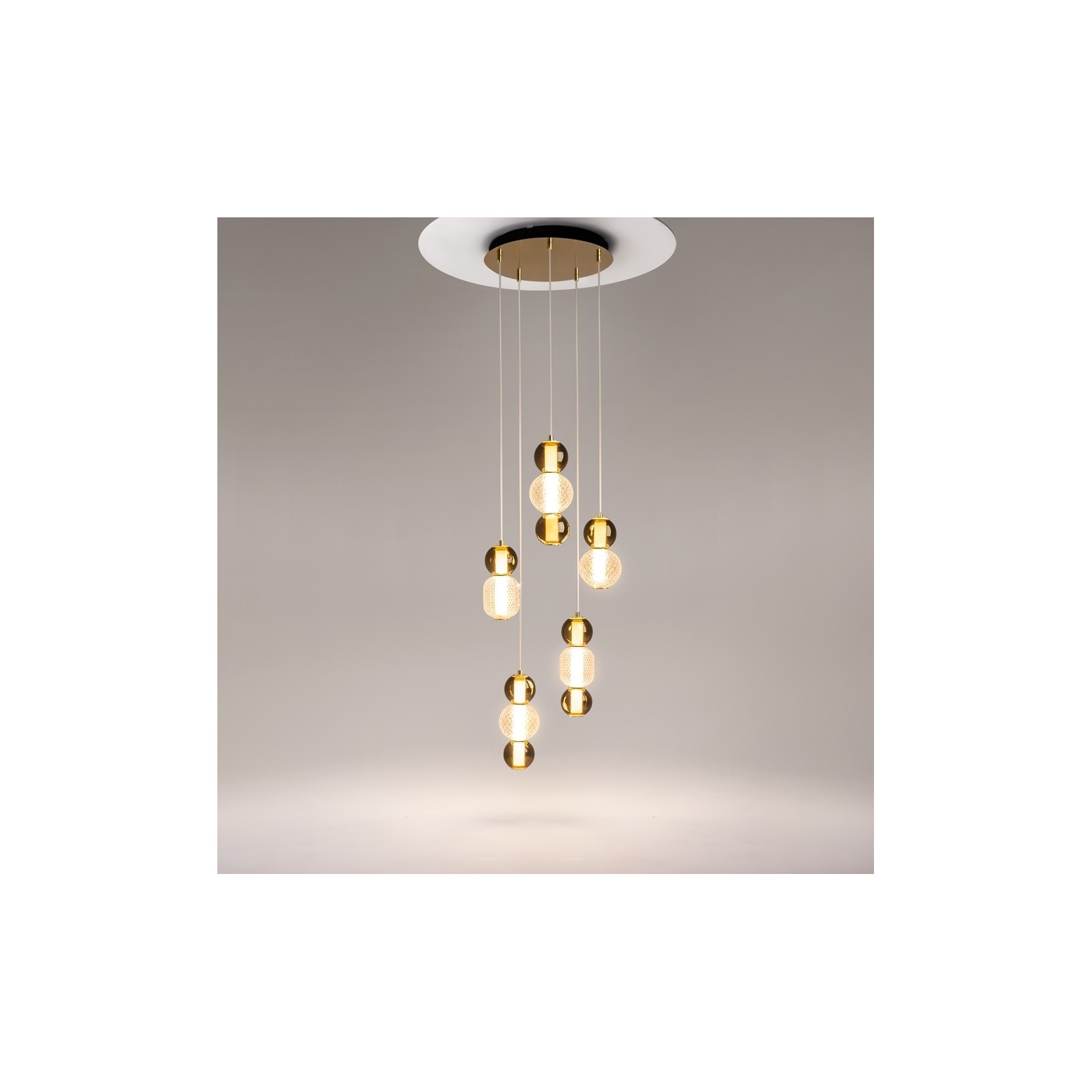 La lampada a sospensione drop è un esercizio di stile che gioca con le trasparenze e le texture per creare un’atmosfera magnetica. Caratterizzata da una composizione verticale di elementi geometrici in vetro, questa lampada non è solo un corpo illuminante, ma una scultura sospesa che aggiunge un tocco di eleganza sofisticata a qualsiasi ambiente moderno.