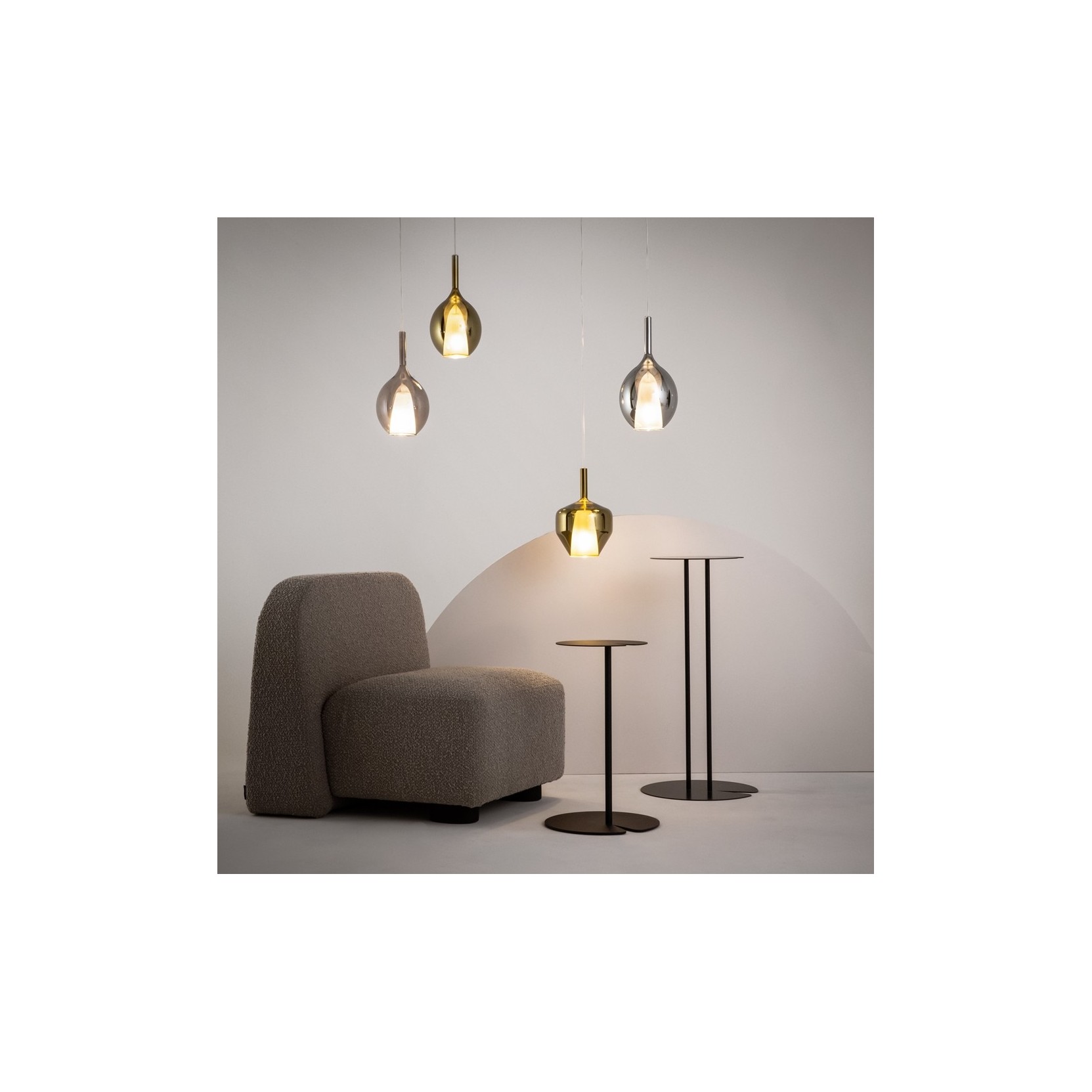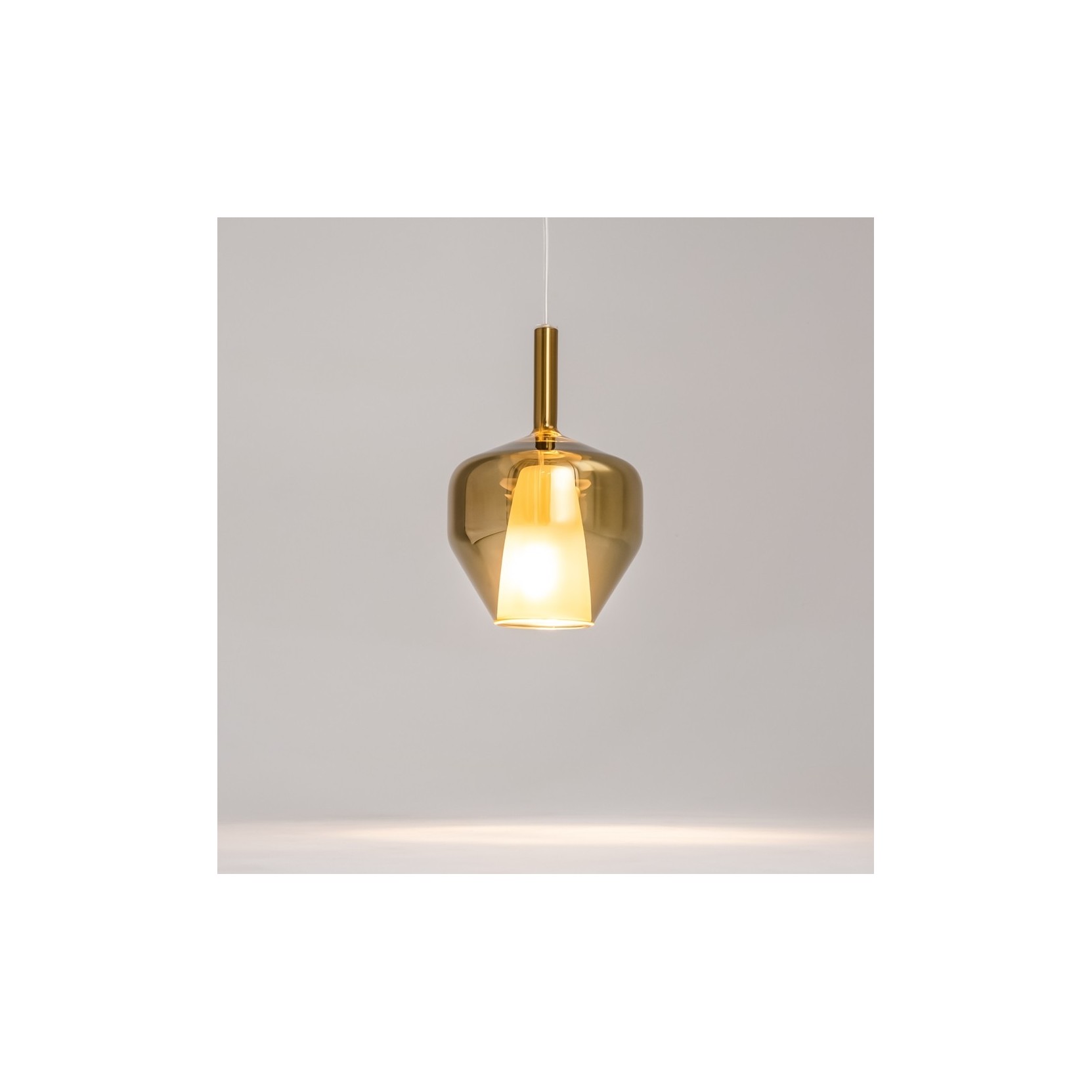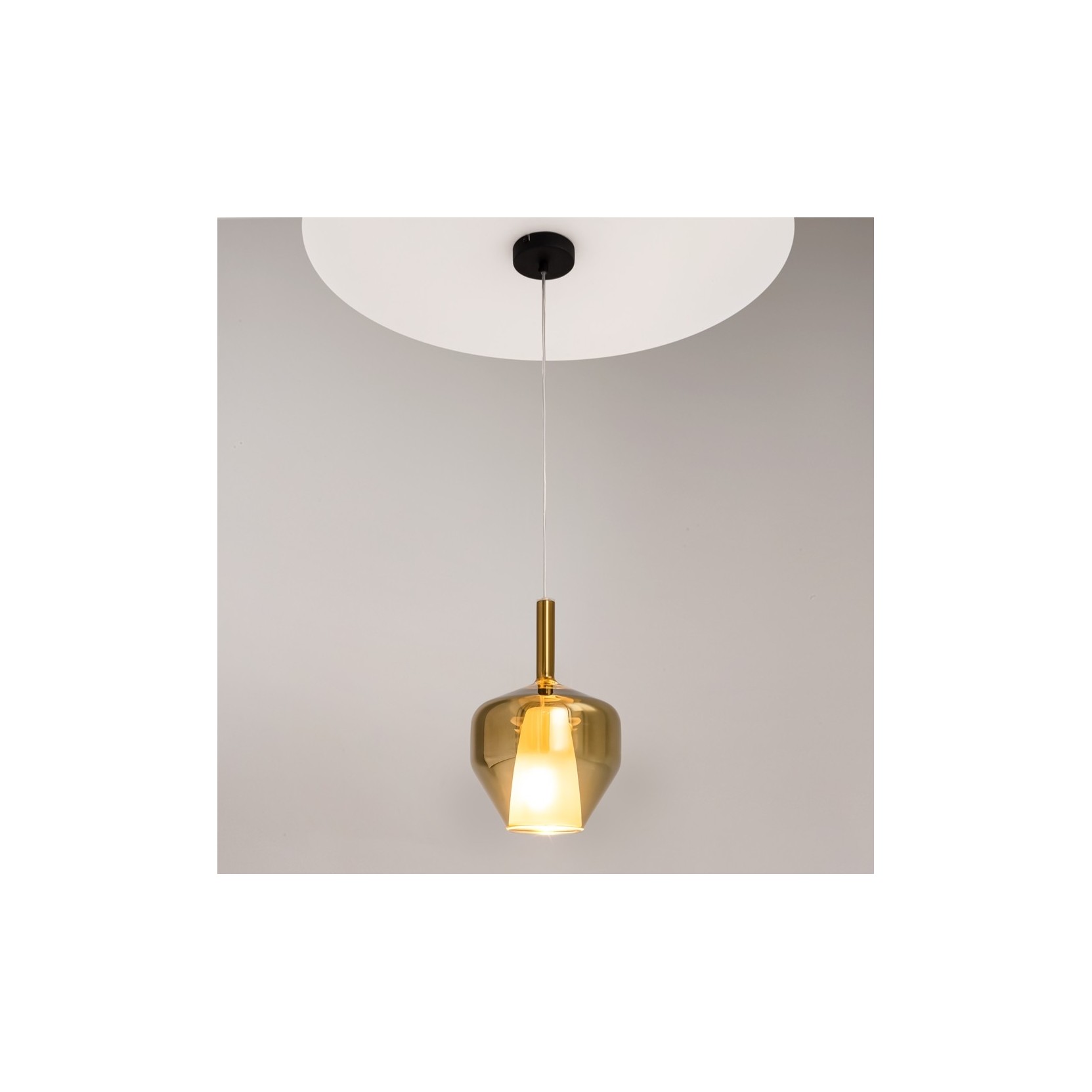 La lampada a sospensione Duality è un inno al design contemporaneo che gioca sui contrasti materici e cromatici per creare un’atmosfera unica. Caratterizzata da un sofisticato paralume in vetro soffiato a doppia tonalità, questa lampada fonde la preziosità della finitura oro ambrato con la purezza della luce diffusa, offrendo un’estetica raffinata che si adatta a ogni interno di classe.