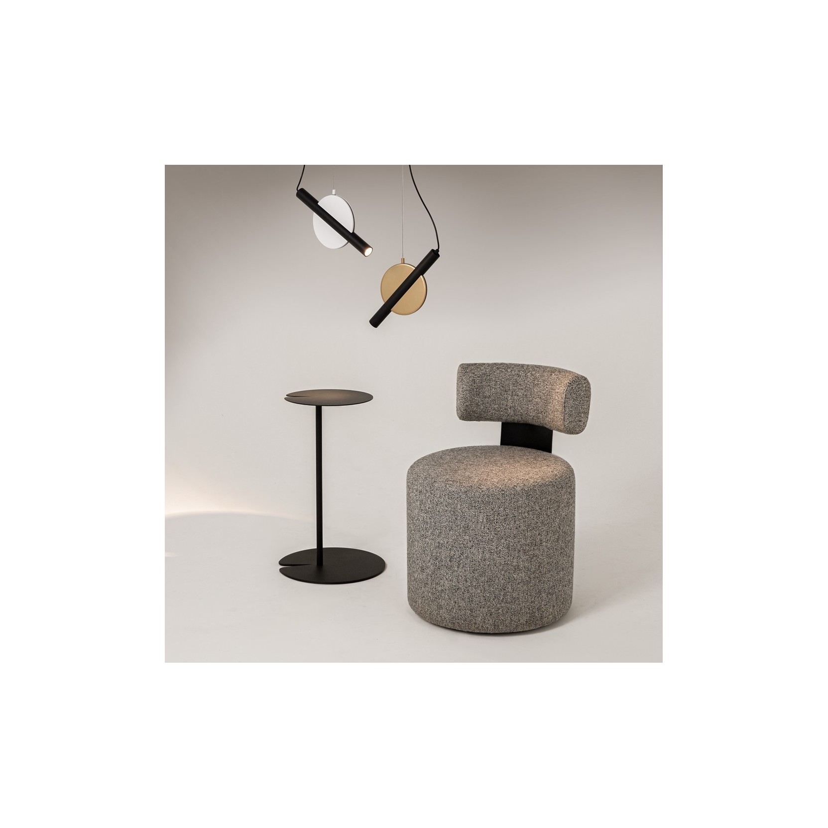 La sospensione Enigma è una dichiarazione di stile che gioca con l’equilibrio e la geometria. Caratterizzata da una composizione audace e asimmetrica, questa lampada combina elementi circolari e tubolari per creare un punto luce che è anche una scultura d’avanguardia. La sua struttura unica, sorretta da un gioco di cavi che ne enfatizzano la leggerezza, la rende perfetta per ambienti contemporanei che ricercano un pezzo iconico e fuori dagli schemi.