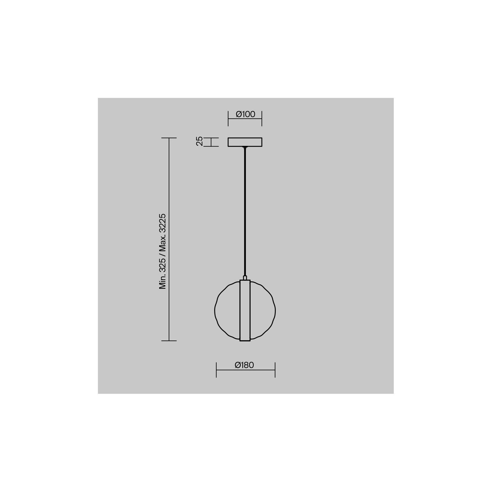 La lampada è composta da una sfera cava in vetro dalla texture organica e increspata, che ricorda la superficie dell'acqua in movimento o formazioni nebulose cosmiche. La sfera è attraversata verticalmente da un anello metallico in nero satinato che ospita la sorgente LED integrata, proiettando la luce verso l'interno del vetro per enfatizzarne ogni singola sfaccettatura e iridescenza.