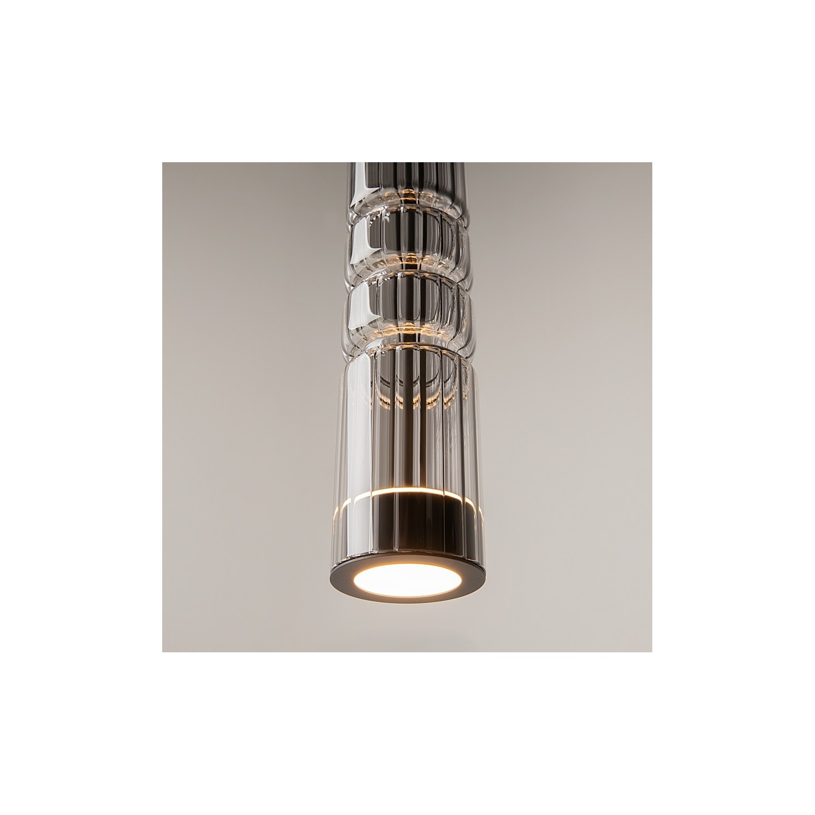 Eleva il carattere del tuo spazio con la sospensione Ordo, un pezzo di design che ridefinisce l'illuminazione d'accento attraverso una silhouette verticale e audace. Questa lampada non è solo un punto luce, ma un elemento architettonico che combina rigore geometrico e una finitura specchiata di grande impatto visivo.