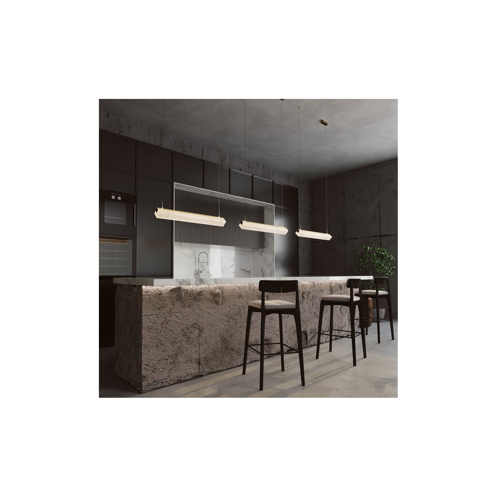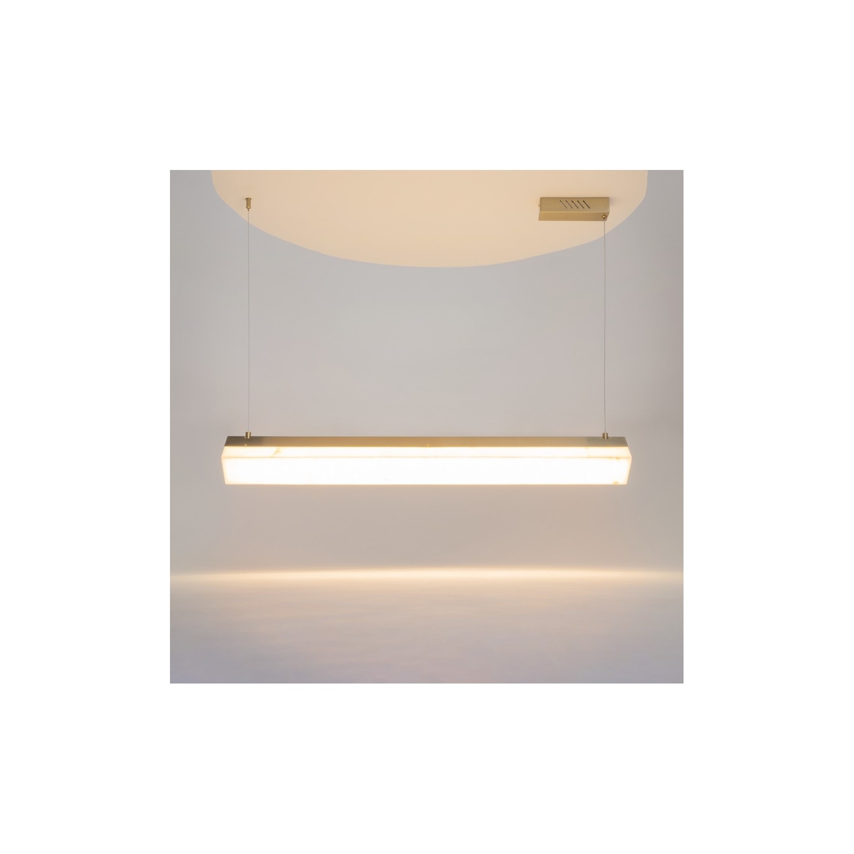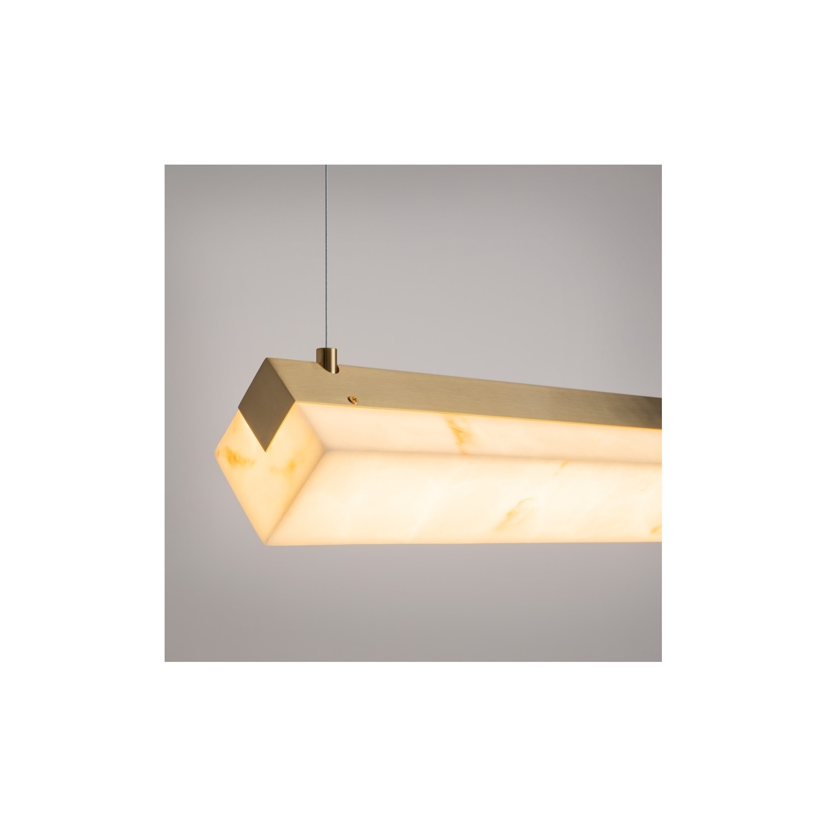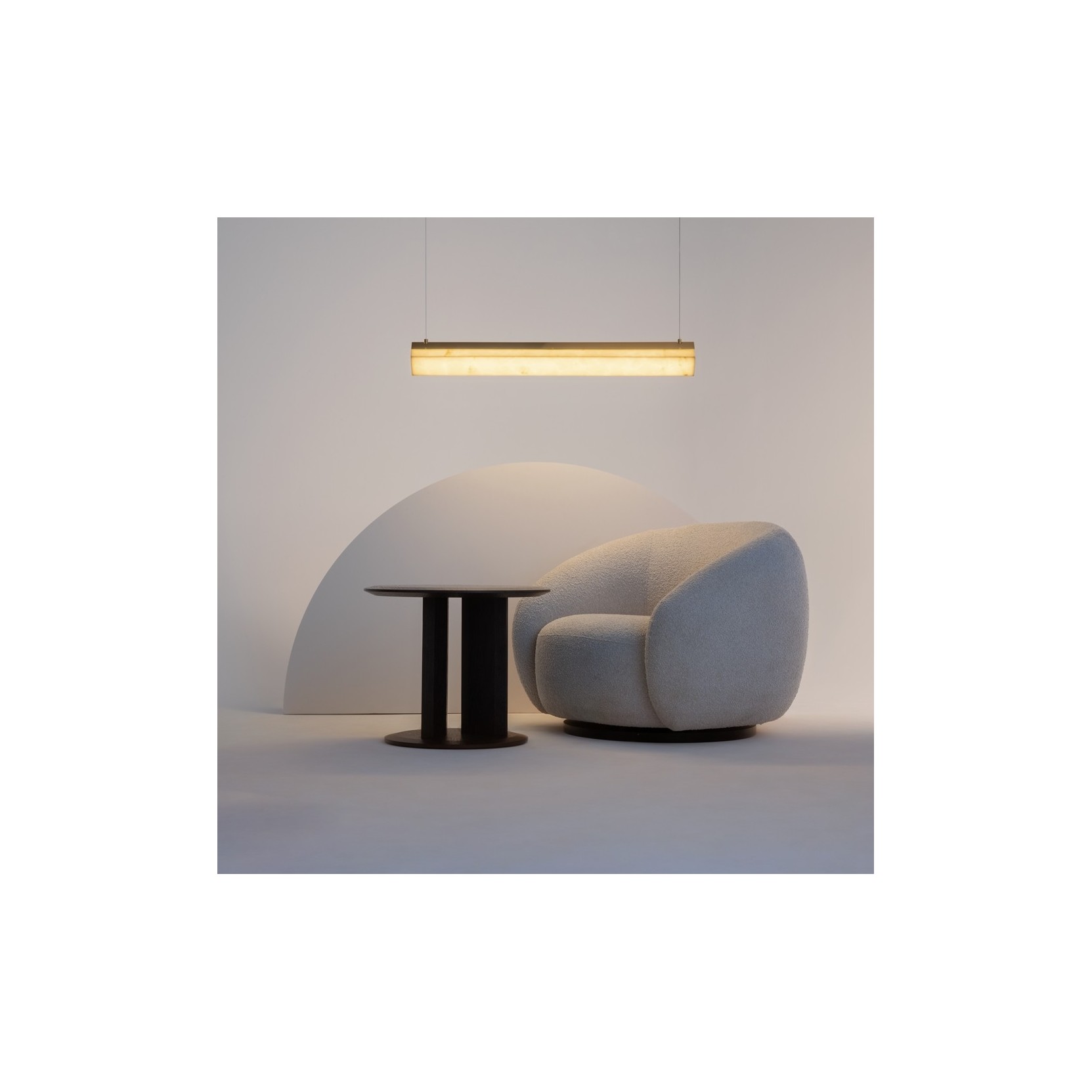 La lampada a sospensione Petra è un esempio magistrale di come il design contemporaneo possa esaltare i materiali nobili della tradizione. Questo elemento illuminante combina una forma geometrica pura con la calda traslucenza della pietra, offrendo una presenza scenografica che emana un'eleganza senza tempo.