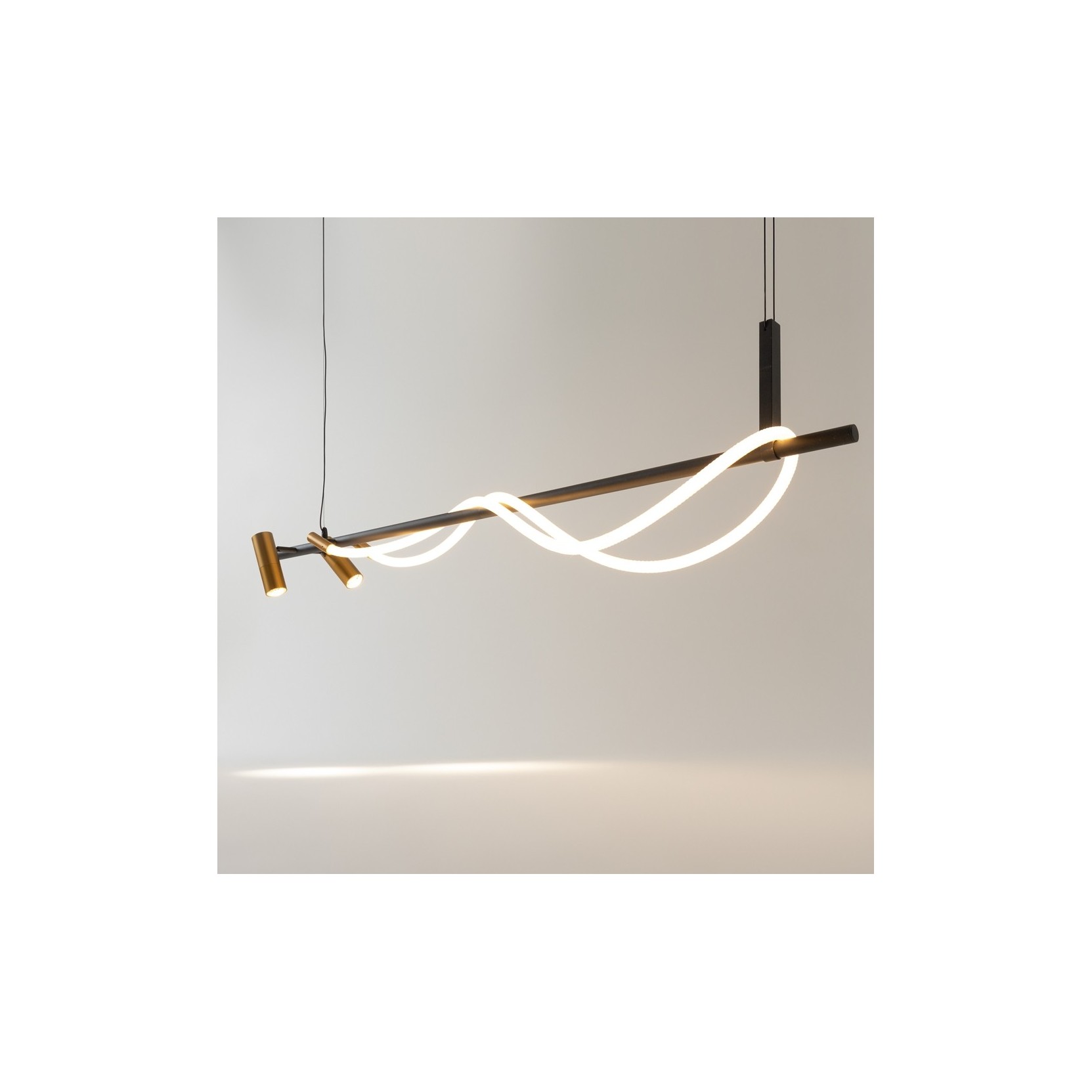 La lampada a sospensione Tau è un'opera di design che esplora il concetto di equilibrio visivo attraverso forme geometriche pure e materiali tecnici. Caratterizzata da una leggerezza quasi eterea, questa lampada trasforma il corpo illuminante in un disco grafico che sembra fluttuare nello spazio.