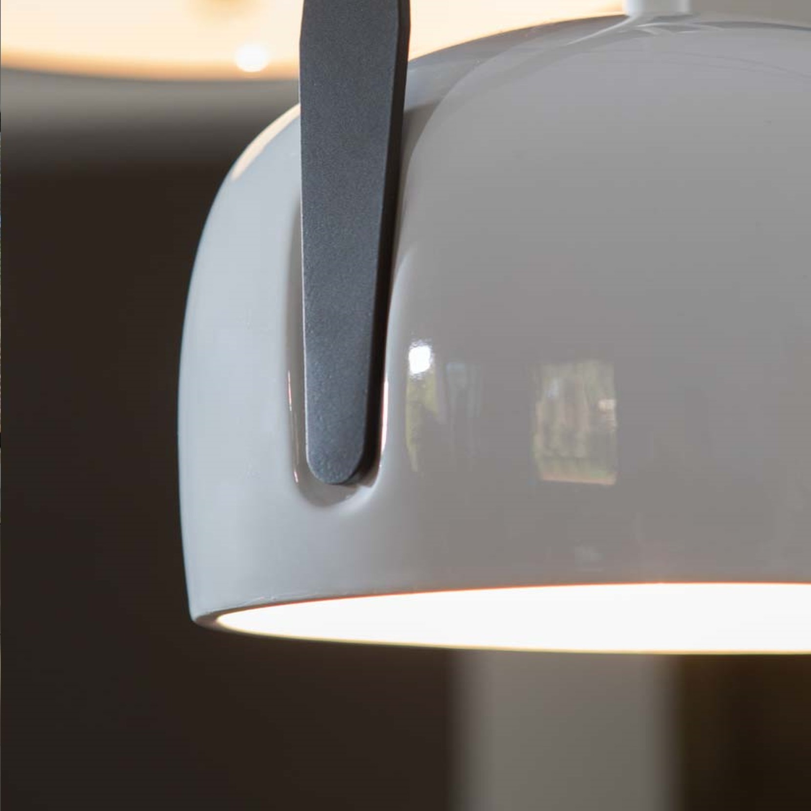 Diffusore in ceramica bianca lucida liscia, manico in metallo verniciato