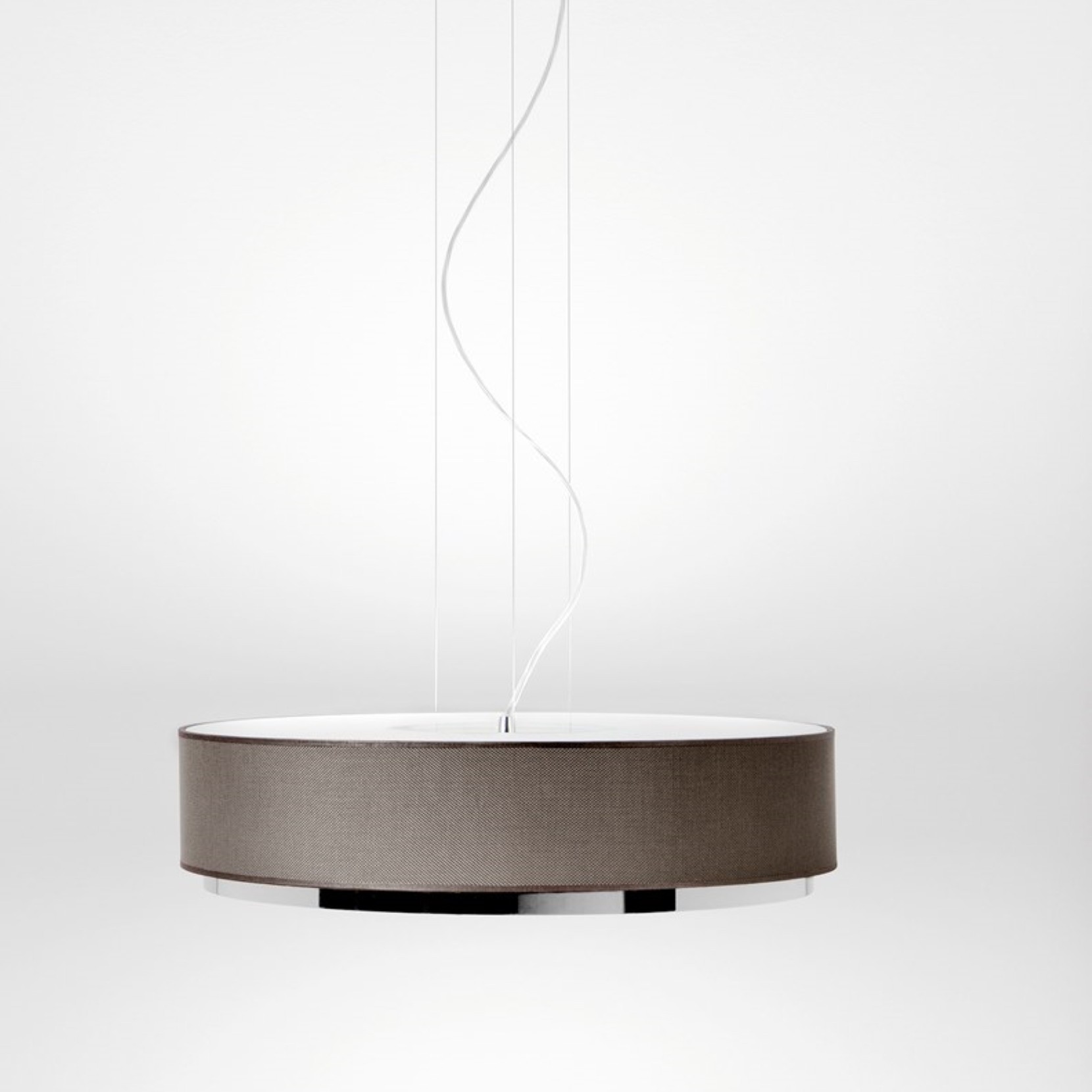 Il paralume è in poliestere, rifinito con un piccolo pezzo di metallo sottostante, emettendo una luce bianca molto piacevole attraverso il vetro satinato nella parte inferiore.? Questo modello è appeso al soffitto da tre fili metallici, la cui lunghezza può essere regolata e fissata a un tettuccio tondo o ovale dello stesso materiale.? IRIS è una collezione completa, composta da diversi pezzi progettati per soddisfare le esigenze di illuminazione in tutta la casa.