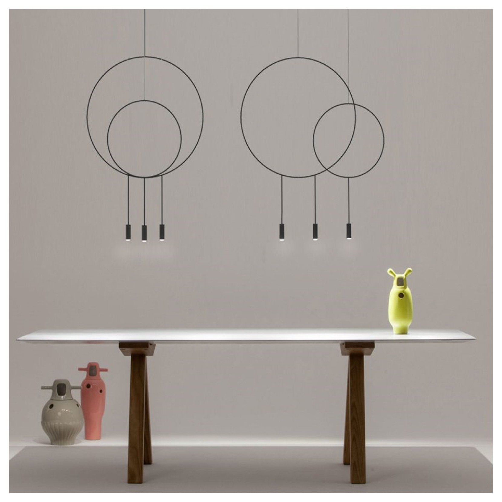 I cilindri da sospensione hanno testate in alluminio e diffusori in acrilico.? Revolta può anche essere usato per dividere ampi spazi in aree discrete.