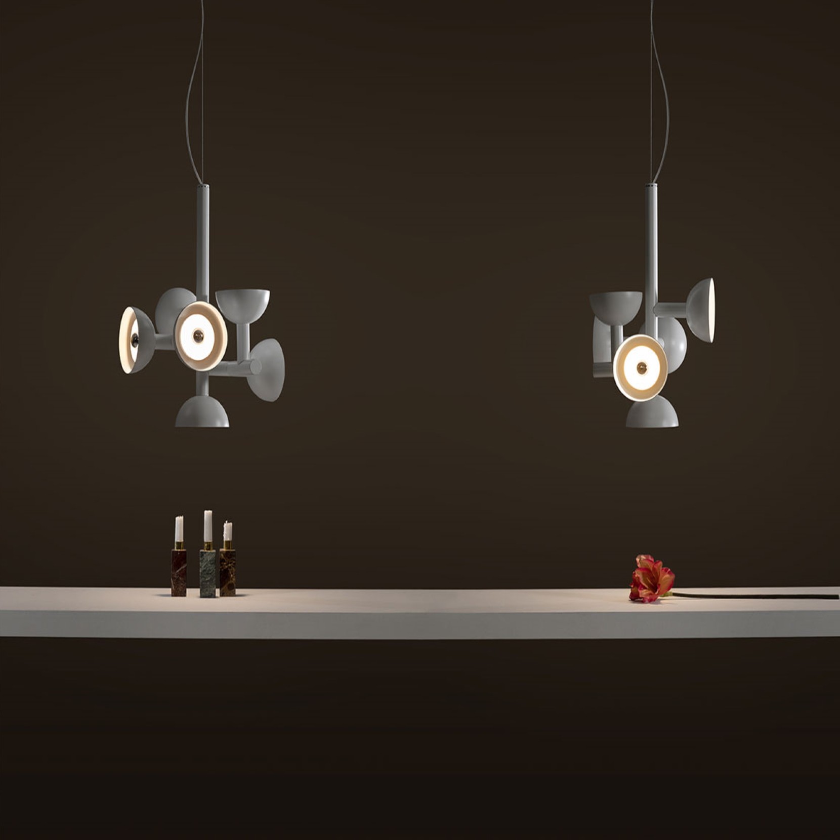 Sibilla è una collezione di lampade a sospensione disegnata da Luca De Bona & Dario De Meo, con una struttura in alluminio nero o bianco opaco. Dal particolare design, la collezione , è idonea a illuminare e arredare ogni tipo di ambiente.
