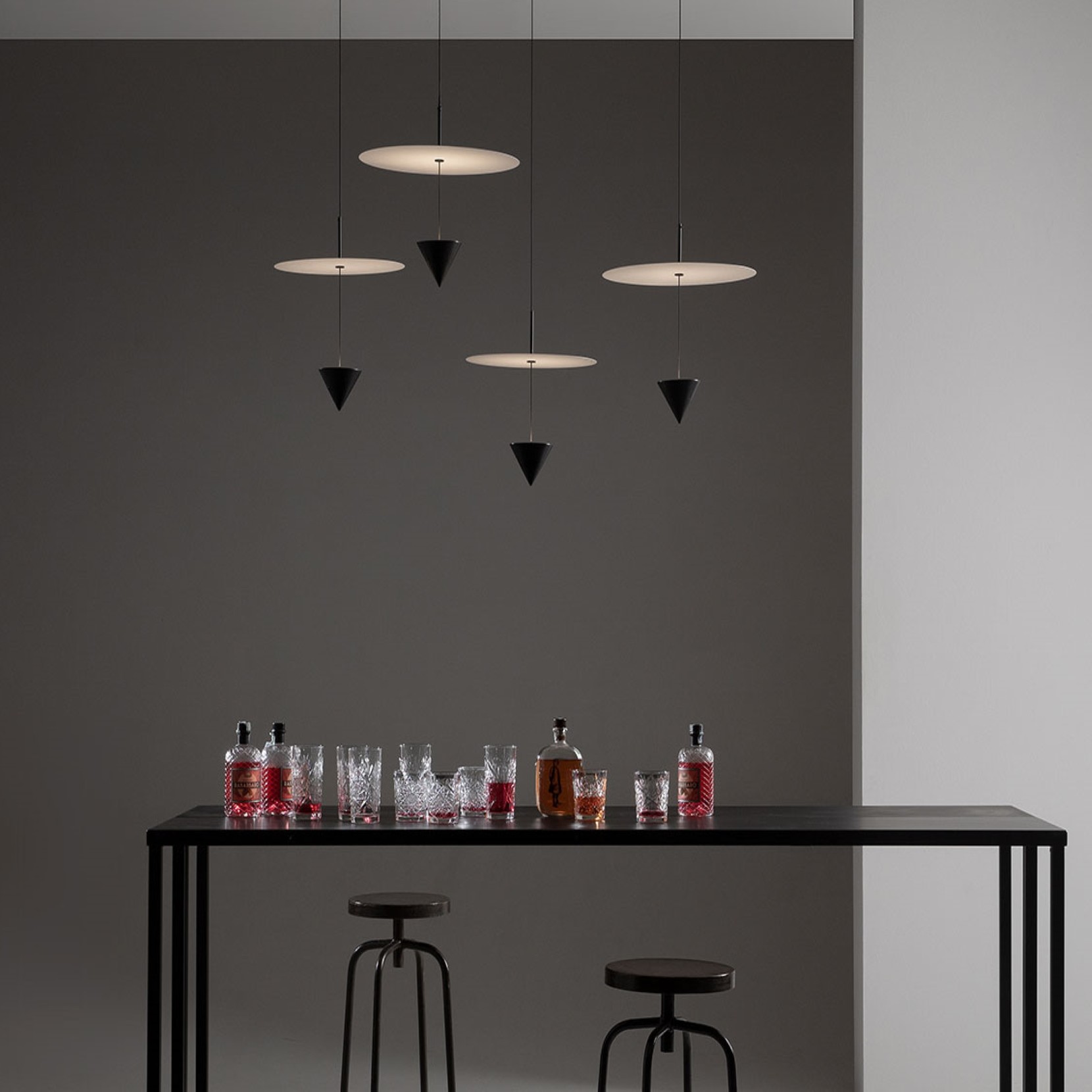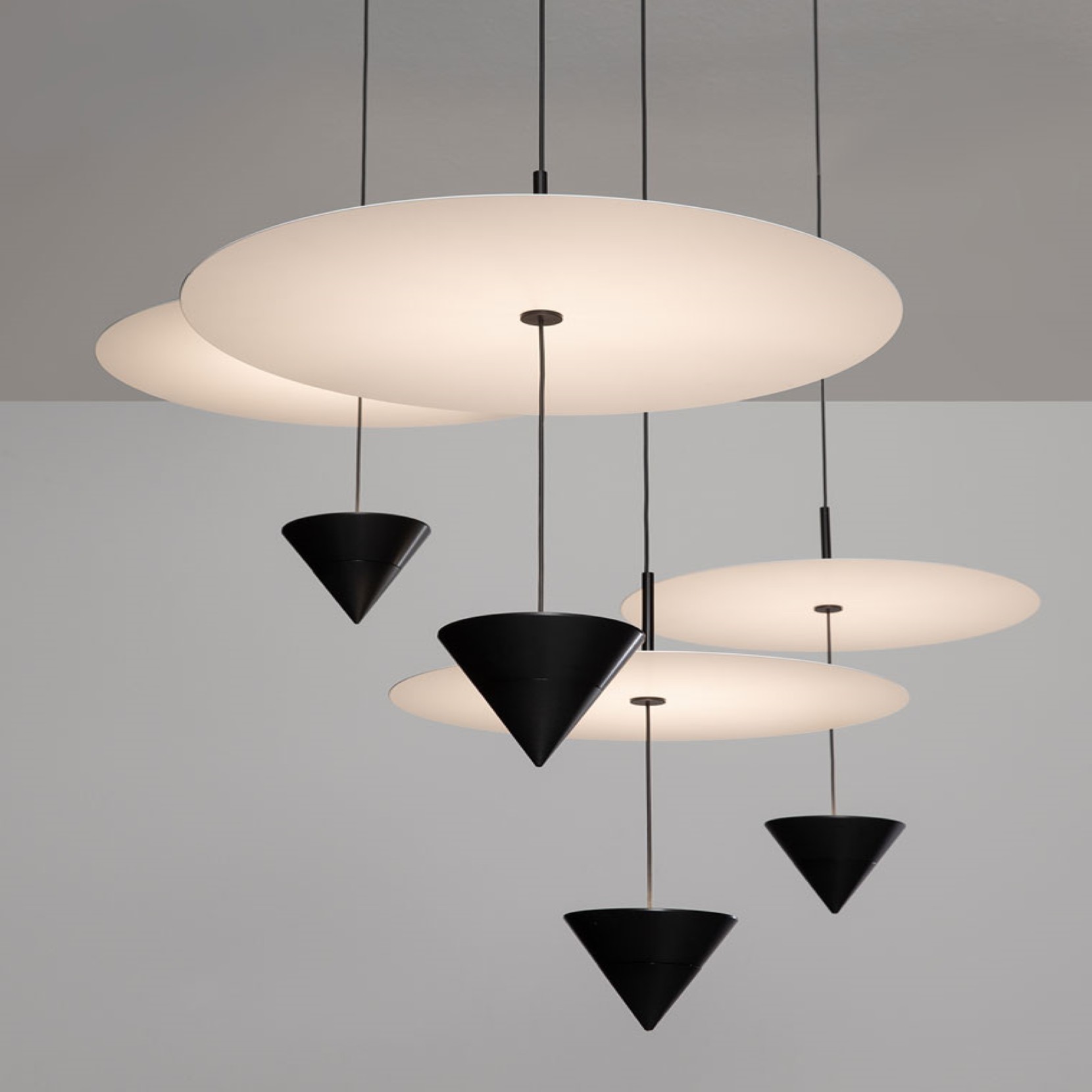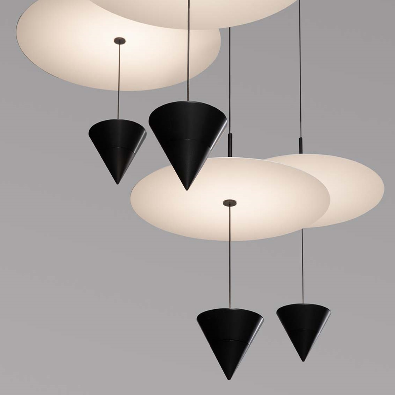 Stralunata è una collezione di lampade a sospensione disegnata da Matteo Ugolini, con una struttura in alluminio nero opaco e piatto in alluminio bianco. Dal particolare design, la collezione, è idonea a illuminare e arredare ogni tipo di ambiente.