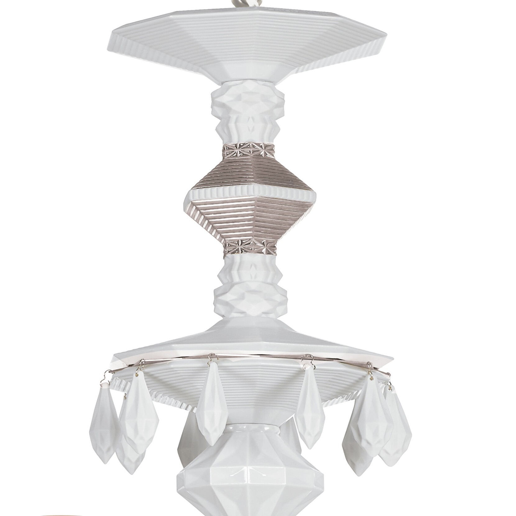 Bellezza della notte. Tale è il nome della pianta i cui petali riflettono il chiaro di luna, acquisendo così la proprietà magica di brillare al buio. Questa specie sorprendente fornisce l'ispirazione per la collezione di illuminazione Belle de Nuit, in particolare il lampadario modello Silver. Le classiche lampade lampadari sono reinterpretate attraverso il linguaggio unico della porcellana e con l'eleganza e la raffinatezza della tonalità argento. Disponibile con 12, 24, 40 e 56 luci e paralumi in porcellana bianca.
