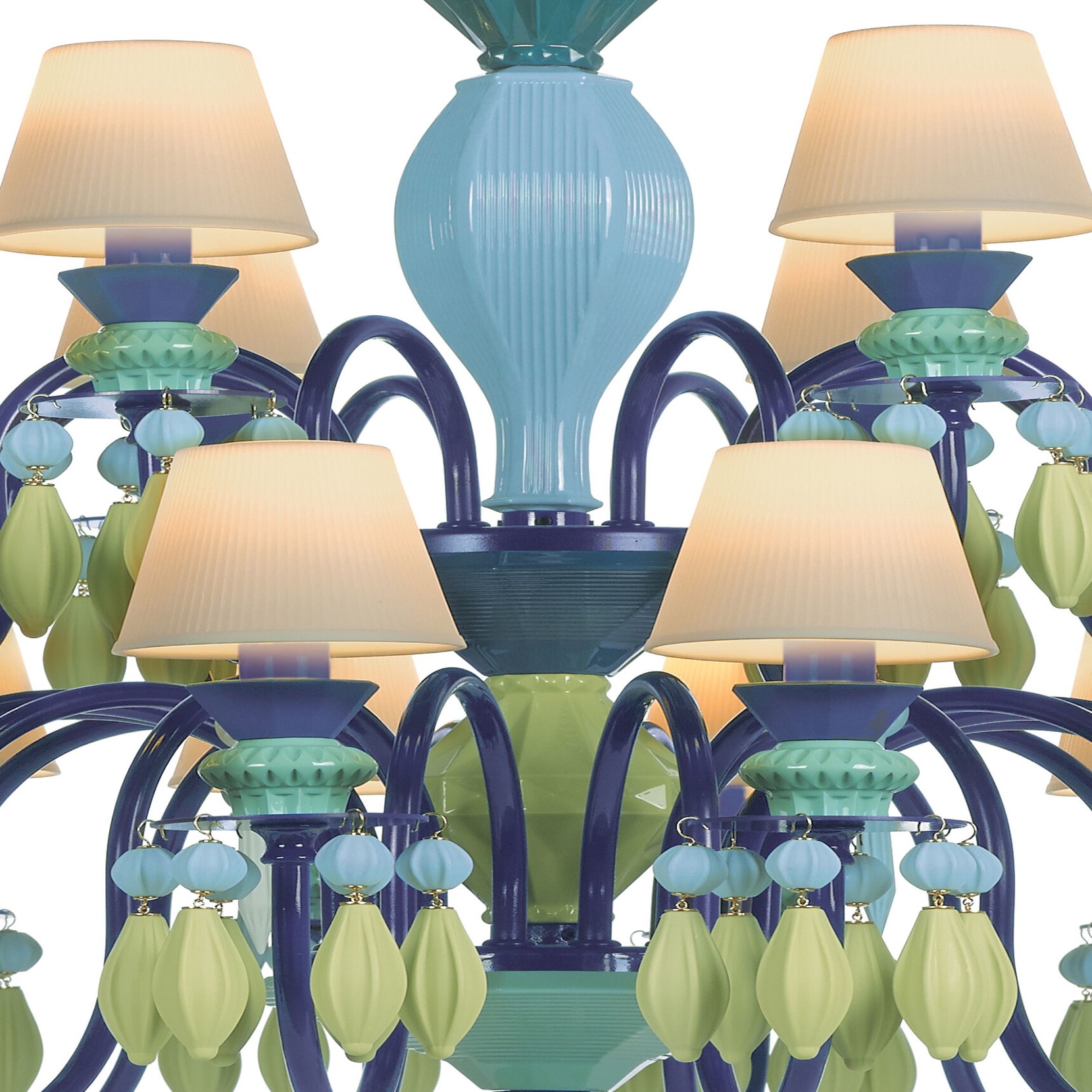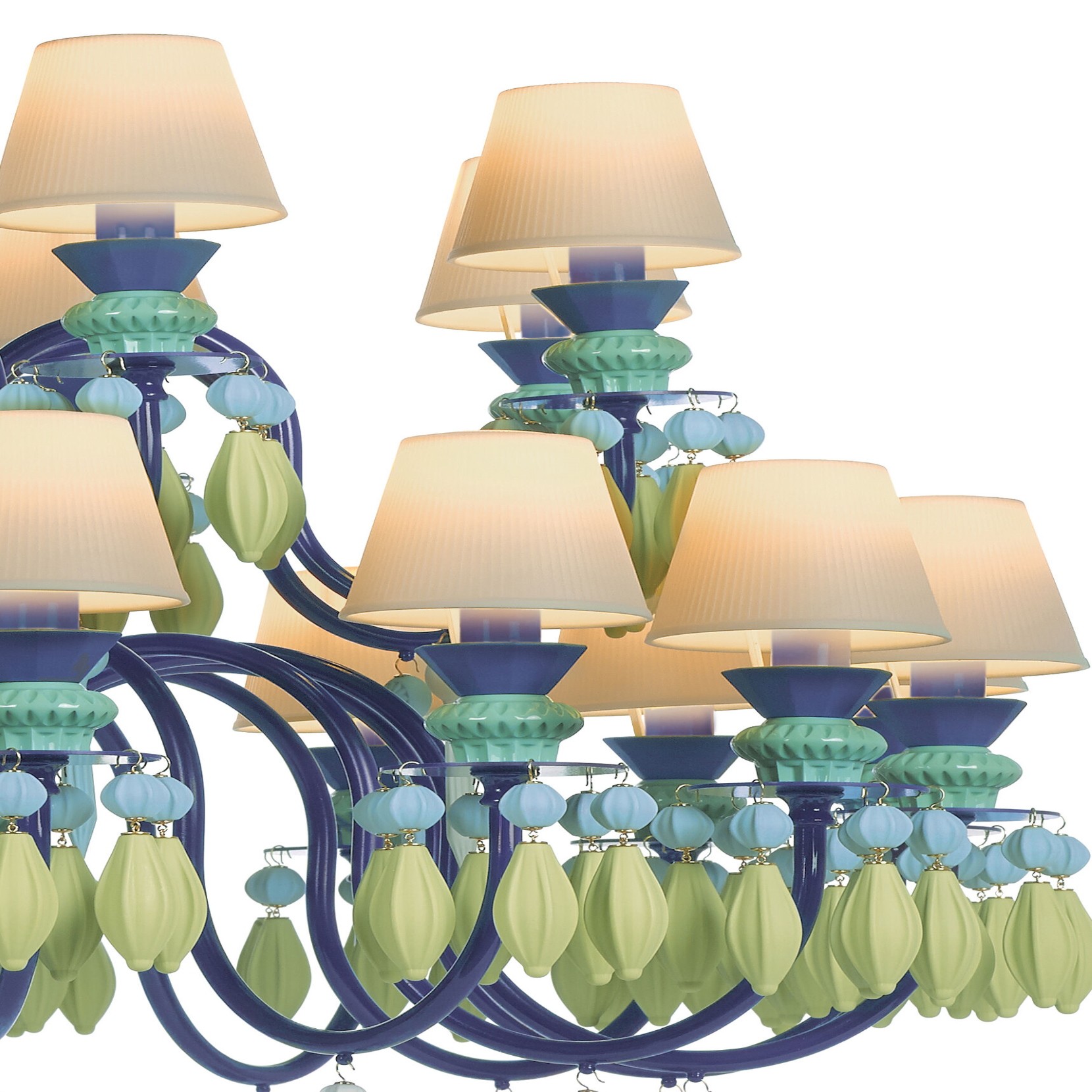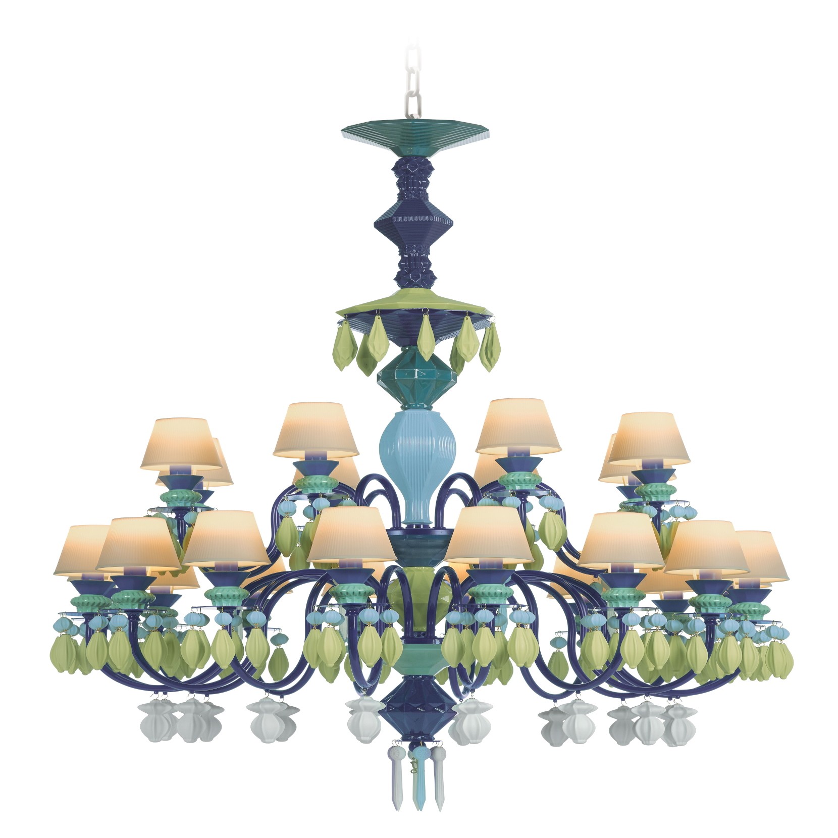 Bellezza della notte. Tale è il nome della pianta i cui petali riflettono il chiaro di luna, acquisendo così la proprietà magica di brillare al buio. Questa specie sorprendente fornisce l'ispirazione per la collezione di illuminazione Belle de Nuit, in particolare il lampadario modello Silver. Le classiche lampade lampadari sono reinterpretate attraverso il linguaggio unico della porcellana e con l'eleganza e la raffinatezza della tonalità argento. Disponibile con 12, 24, 40 e 56 luci e paralumi in porcellana bianca.