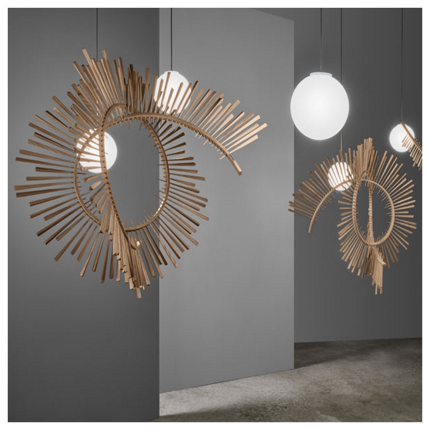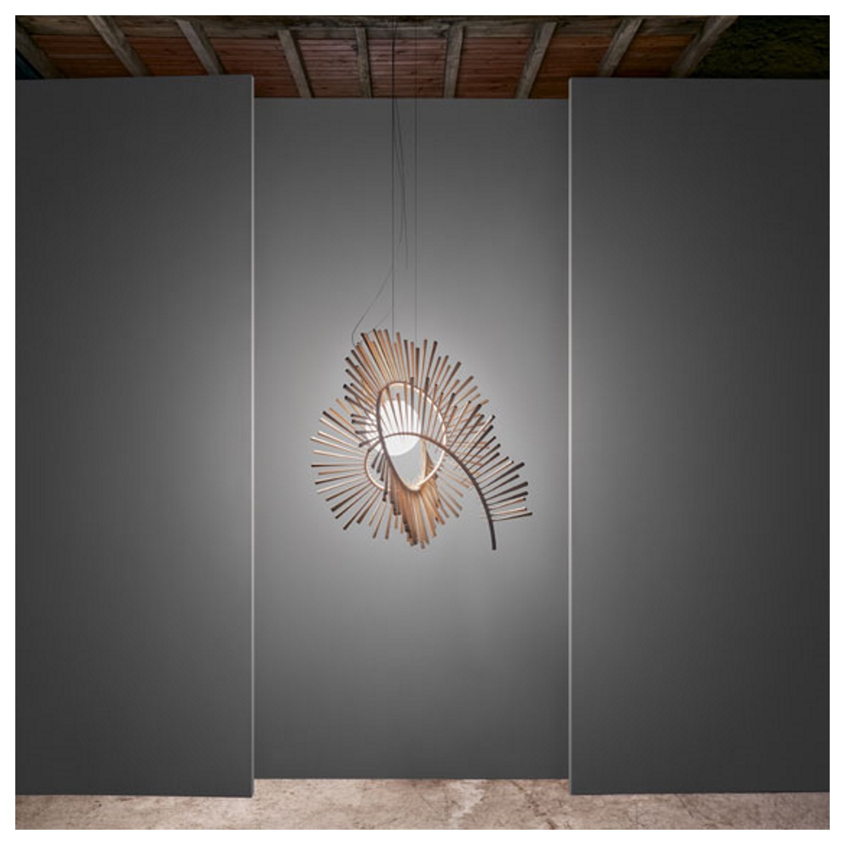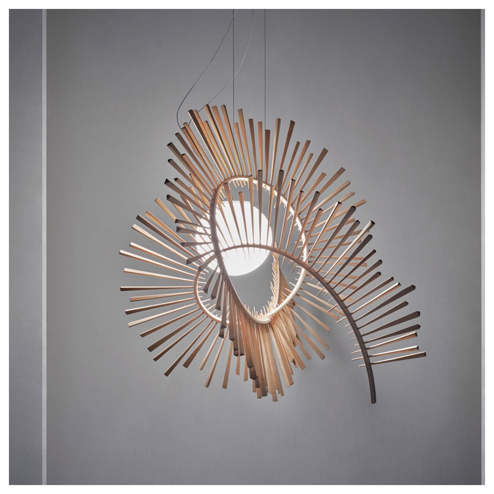 Aimei è una lampada a sospensione disegnata da Arturo Álvarez. Tra le più scultoree della collezione, si ispira ai moti dell'universo e a ciò che lo compone. Delle spirali abbracciano la luce che funge da nucleo che quindi da vita alla lampada stessa.