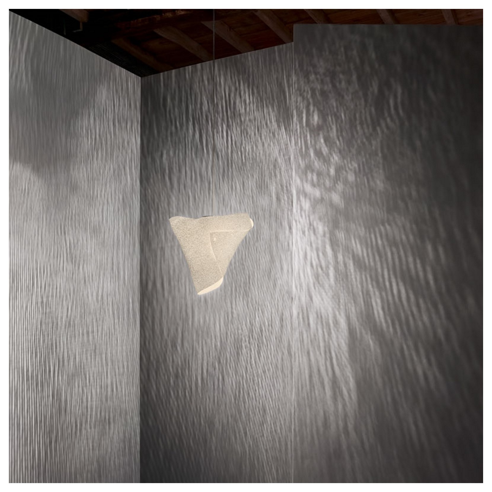 Fogli di rete in acciaio inossidale si piegano e sovrappongono dando vita alle forme delicate di Ballet Relevé, disegnata da Héctor Serrano. Per ogni punto di vista una diversa forma grazie alle sue linee asimmetriche, fluide, naturali.