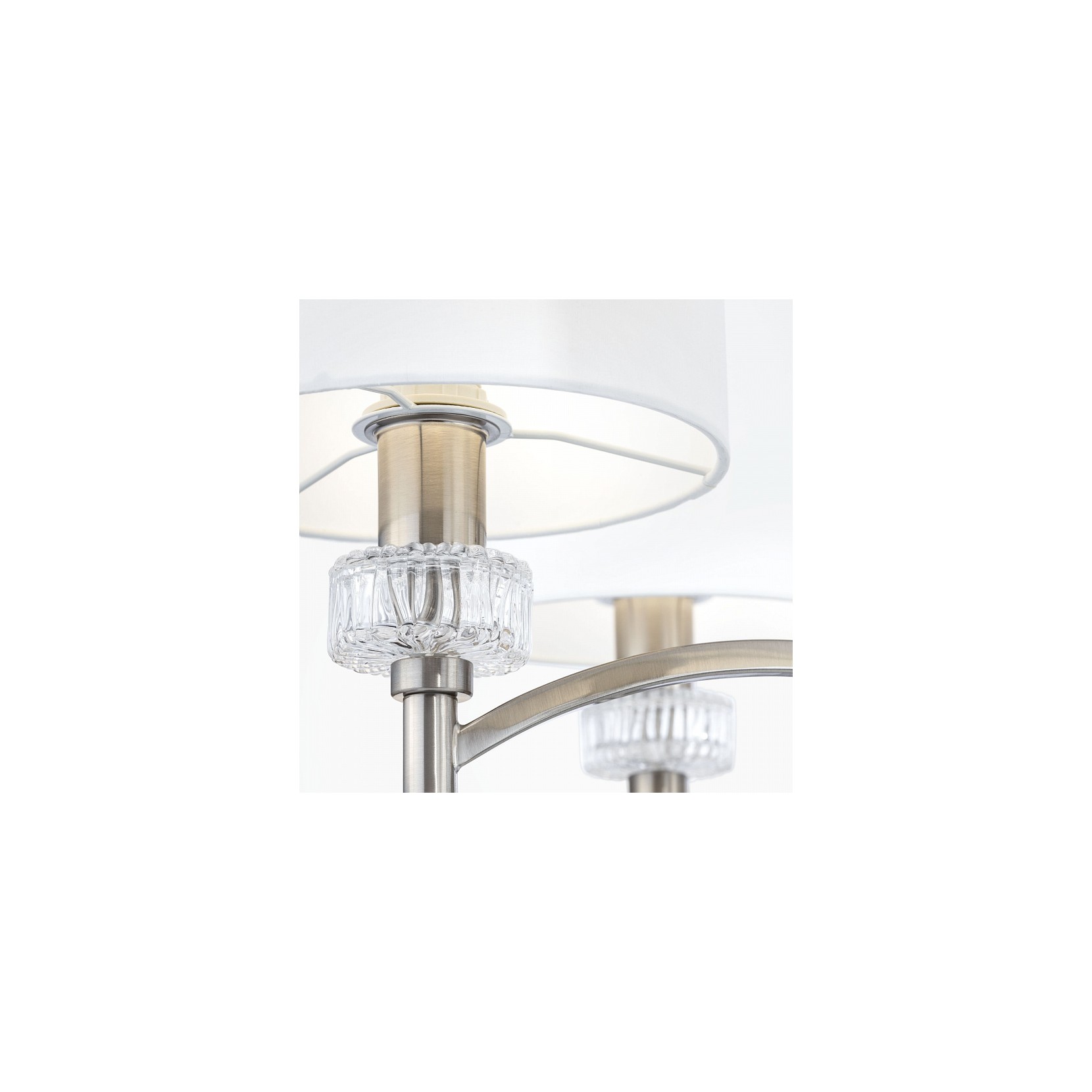 ALICANTE è la lampada a sospensione con struttura in metallo ed elementi decorativi in vetro. I paralume in PVC è rivestito in tessuto bianco. Alicante si adatta ad ambienti come un salotto, camera da letto.